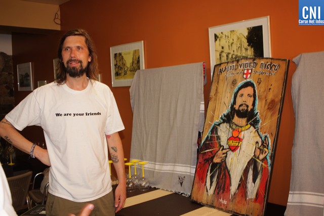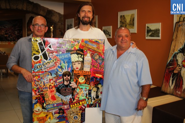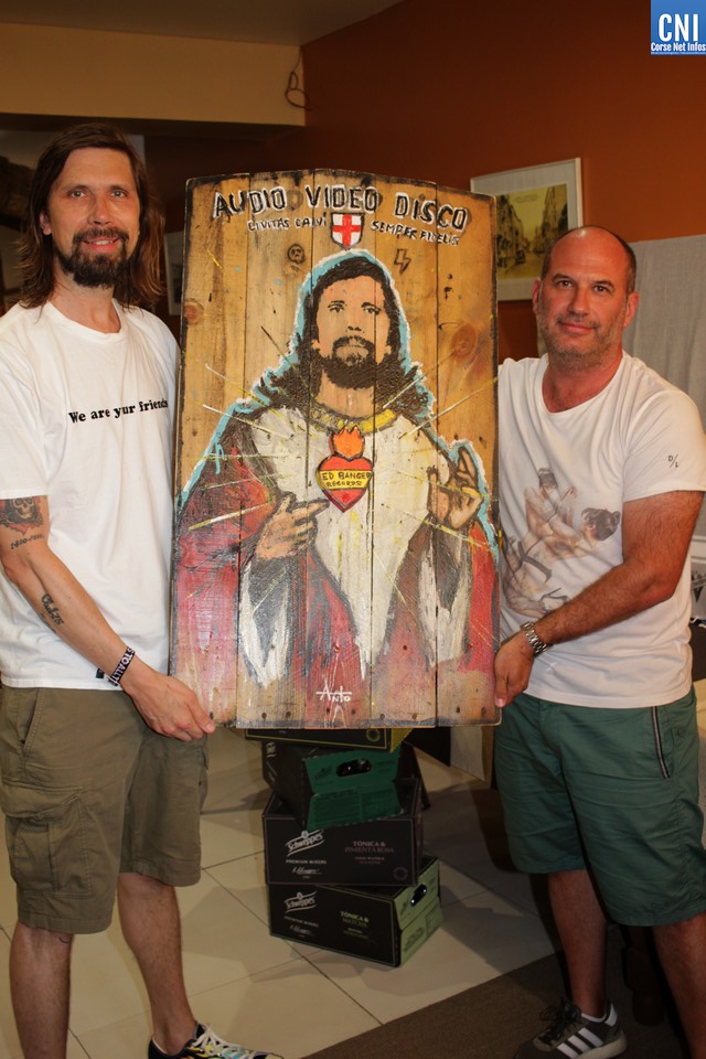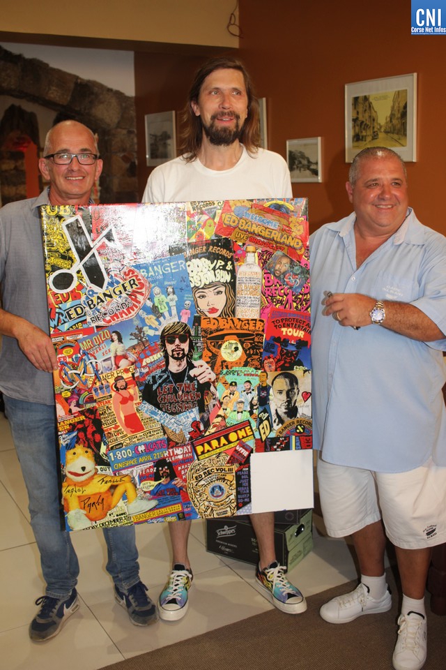 Patrick Mattei invitait ensuite Pedro Winter à découvrir deux oeuvres réalisées par deux artistes locaux, l'une de Anto fils de pop, en acrylique sur bois représentant Santu Petru Winter et l'autre de Jeeper faite d'un savant mélange inspiré du net et du label Ed Banger.
