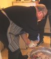 Chaque mois, un thème est choisi, mais pour Décembre et janvier, traditionnellement c'est la pulenta" explique l'abbé Valery alors qu'il s'attelle dans la cuisine à préparer ce plat à base de farine de châtaigne, alors que d'autres sont là pour aider l'archiprêtre.