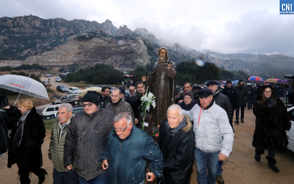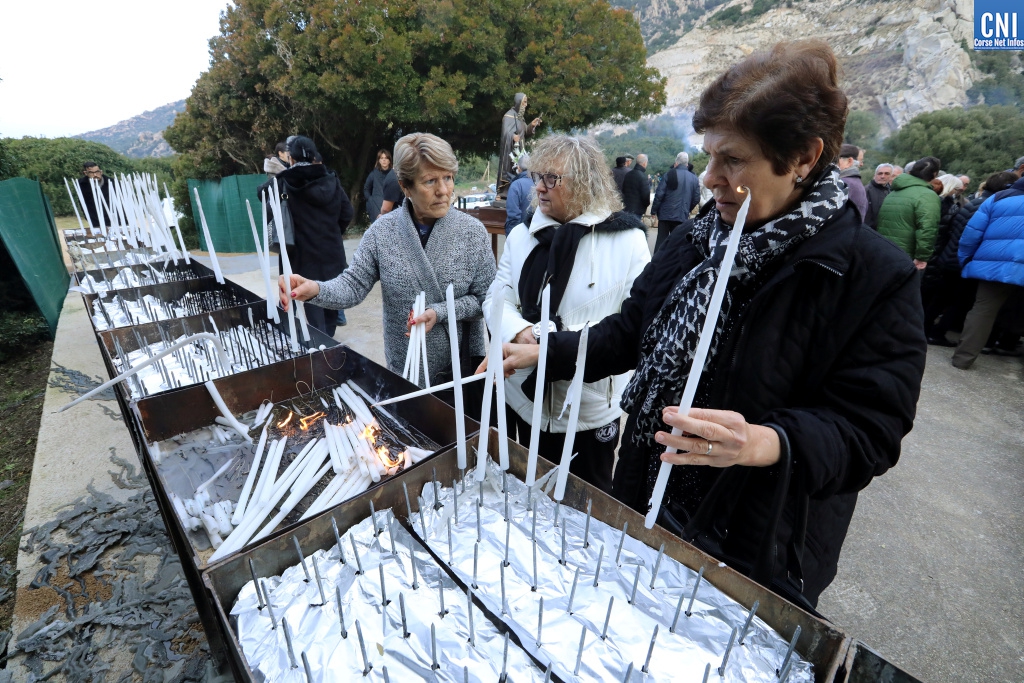 Ce jeudi, le temps était couvert, il faisait un tantinet frisquet mais sans plus. Le temps était certes menaçant mais on sait résister à quelques gouttes de pluie. La foi prend aussitôt le dessus. Un petit vent frisquet venu de Capo di Feno obligeait les pèlerins à se serrer les uns contre les autres dans la petit chapelle ou dehors, près des installations ou se consument les bougies et plus tard autour des barbecues aux effluves de viandes grillées dans la pure tradition de Saint Antoine. Figatelli, agneaux entiers, fasgioli à l’Aiaccina, fritelle et couronne des Rois, il ne manquait rien à la fête, bien au contraire.
