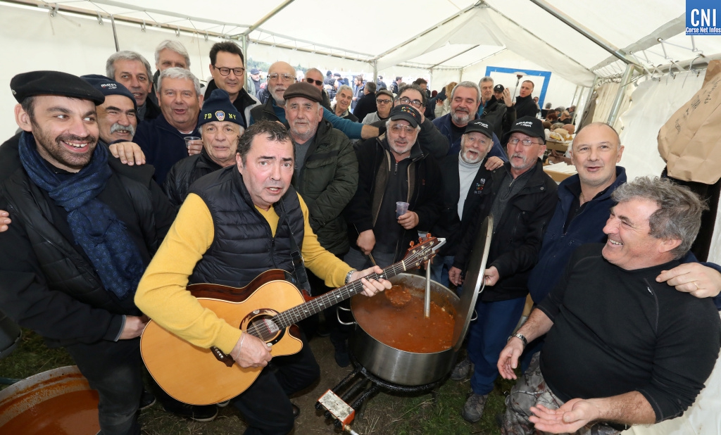 Le tout, dans une ambiance bien sympathique, force est de le constater. Autour de l’oratoire et sur plusieurs centaines de mètres carrés, chacun a déployé des trésors d’imagination pour installer sa tente et son barbecue. La fumée s’élève partout autour du mont et les odeurs envahissent la vallée jusque sur les hauteurs du mont que l’on peut facilement comparer à un petit village de toile installé le temps d’une journée. La perspective est agréable et à partir de 12 h 30, l’ambiance change totalement autour des groupes, chacun occupant exactement la même place depuis des décennies. Les Marchini, d’Orazio, Paoli, plus loin I Pescadori in Festa et leur immense tente, les politiques qui font la tournée des popotes. Dès lors, la fête bat son plein, les stands déversent kilos de fritelle, frappe, canestre et petits pains bénis, bien entendu des bougies qui vont alimenter la fosse voisine. Saint Antoine c’est la fête dans toute sa splendeur, chère au cœur des Ajacciens qui apprécient ces agapes en plein air, même quand celui-ci est plutôt frais ! La ferveur décuple, la magie opère. Et on ne s’en lasse pas, bien au contraire !