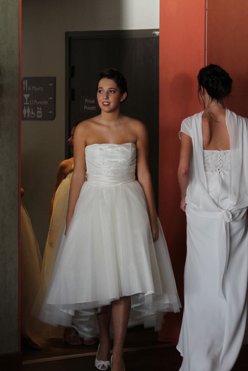 Un défilé organisé par Céline Cossu du magasin Just Me dans la rue Fesch à Ajaccio, pour les robes de mariée et par Anthony Pitiloni de la boutique Serge Blanco sur le cours Napoléon, pour les costumes. Des mannequins coiffés par Alain Frigara, coiffeur sur le cours Napoléon et maquillés par le salon Sandy’s make up. Elles étaient toutes plus belles les unes que les autres, une dizaine de mannequins du jour pour présenter environ trente robes de mariées. De la dentelle, des traines, des bustiers, des frous frous mais aussi des robes plus simples : une explosion de beauté, de charme et de féminité. Egalement des costumes hommes toujours élégamment portés. Le public n’a pas boudé l’évènement et ils étaient nombreux dans la salle de réception et sur la terrasse du Radisson Blu, à applaudir les modèles. Une vue sur la mer idyllique, un cadre reposant et chaleureux pour un appel au rêve et au bonheur.