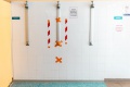 " Un marquage au sol est mis en place avec d'un côté une porte d'entrée et de l'autre une porte de sortie. Des masques et produit hydroalcooliques seront à disposition, le comptoir d'accueil est équipé d'un plexi-glass. Le port du masque est obligatoire jusqu'au vestiaires. Nous l'avons dit, entre chaque créneau horaire, 15 mn seront consacrées à la désinfection des locaux mais aussi du matériel"