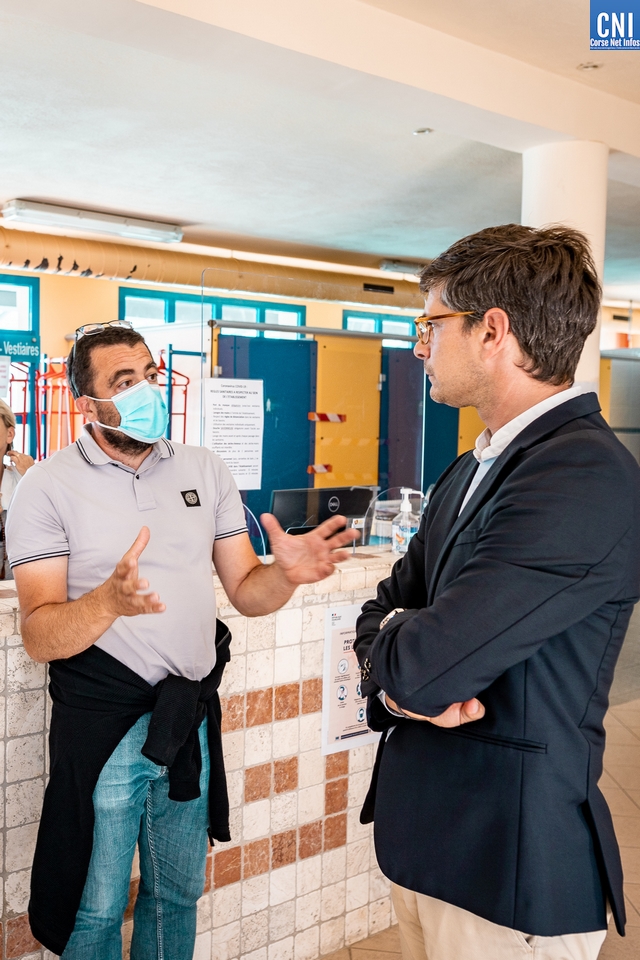 Accueilli par le Maire de Monticello, Joseph Mattei, et par l'ensemble du personnel de la piscine municipale, le représentant de l'État à pu constater avec quel sérieux l'équipe municipale a mis en place le protocole sanitaire imposé par le Gouvernement.