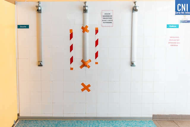 " Nous avons la chance que depuis septembre 2019 la piscine est équipée d'une structure mobile rétractable et depuis peu d'un déshumidificateur d'air. Le petit bassin a été scindé en quatre parties et sera exclusivement réservé aux loisirs, et ce jusqu'à nouvel ordre.Le grand bassin séparé en deux couloirs sera lui réservé à la natation et aux activités nautiques.. Notre priorité c'est la santé du public et du personnel. Les réservations sont ouvertes depuis hier." précise le Maire Joseph Mattei avant de laisser le soin au responsable de la piscine, Fabien Guyon de détailler toutes les mesures mises en place pour cette réouverture programmée lundi matin:
