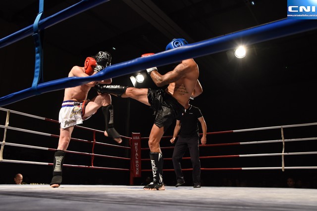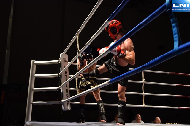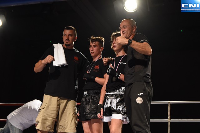 En kick boxing light fight, victoire de Leo Biancarelli, Pierre Samuel Emmanuelli du BKM Bastia face à Nino Fournier et Hugo Saint Martin (La Cadriere).