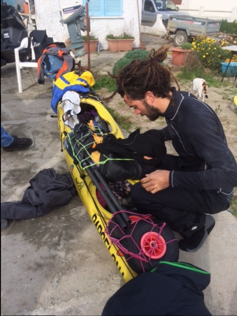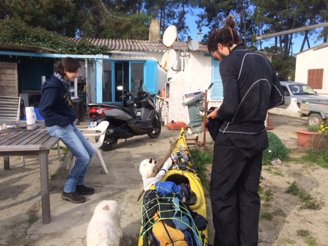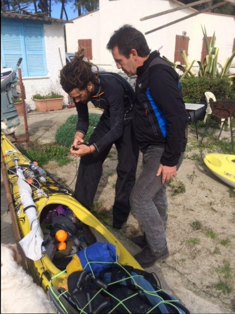 Avec soin, en prenant garde de ne rien oublier, le jeune espagnol réarme son kayak. Il plie soigneusement ses vêtements techniques dans des caissons étanches, vérifie son matériel de sécurité, sa balise de détresse, ses fusées. Quelques oranges et clémentines disposées ça et là lui permettront l'apport nécessaire de glucides et il est temps de dire adieu, adieu à cette rencontre fugace mais si humainement forte. Serge, avant de s'éloigner des berges sablonneuses de Vignale, prend une dernière photo de ses hôtes, le marquage indélébile d'un sens de l'hospitalité et de l'accueil, celui qui anime au plus profond de nos êtres une certaine conception de l'humanité.