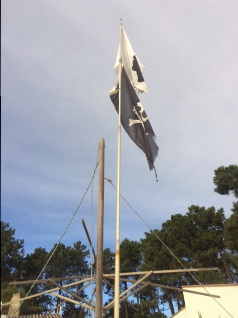 Ce sont ce pavillon de pirate et cette bandera qui ont attiré le kayakiste. (Photo Stéphane Gamant).