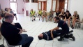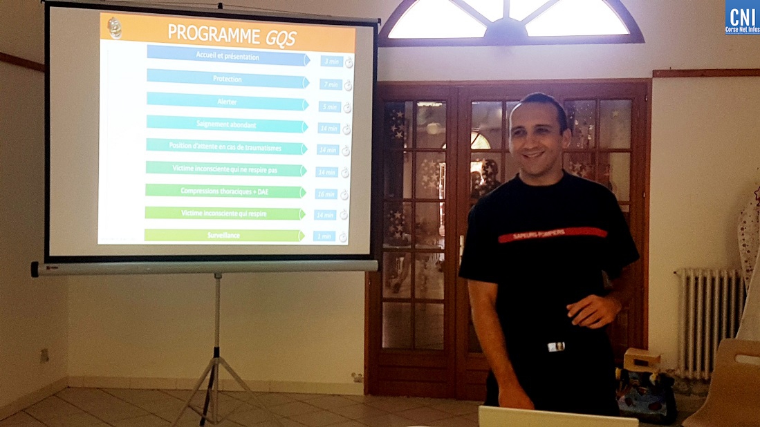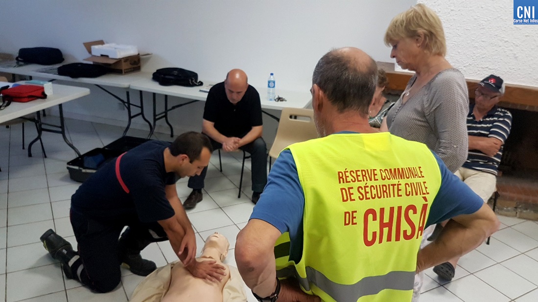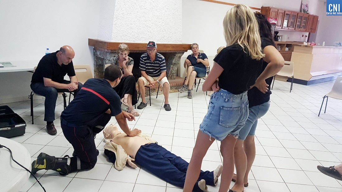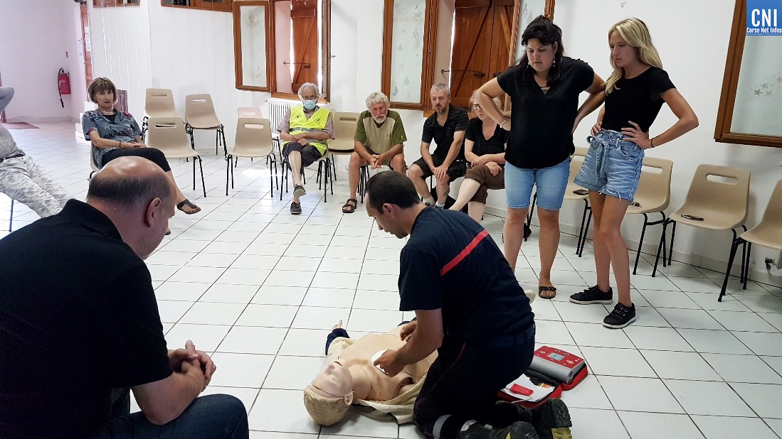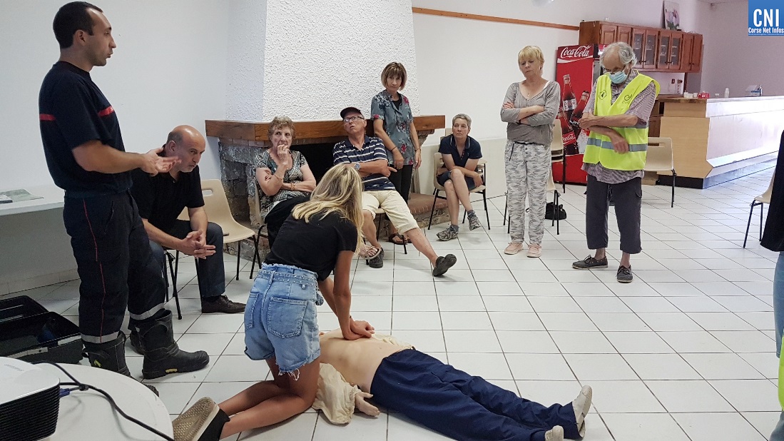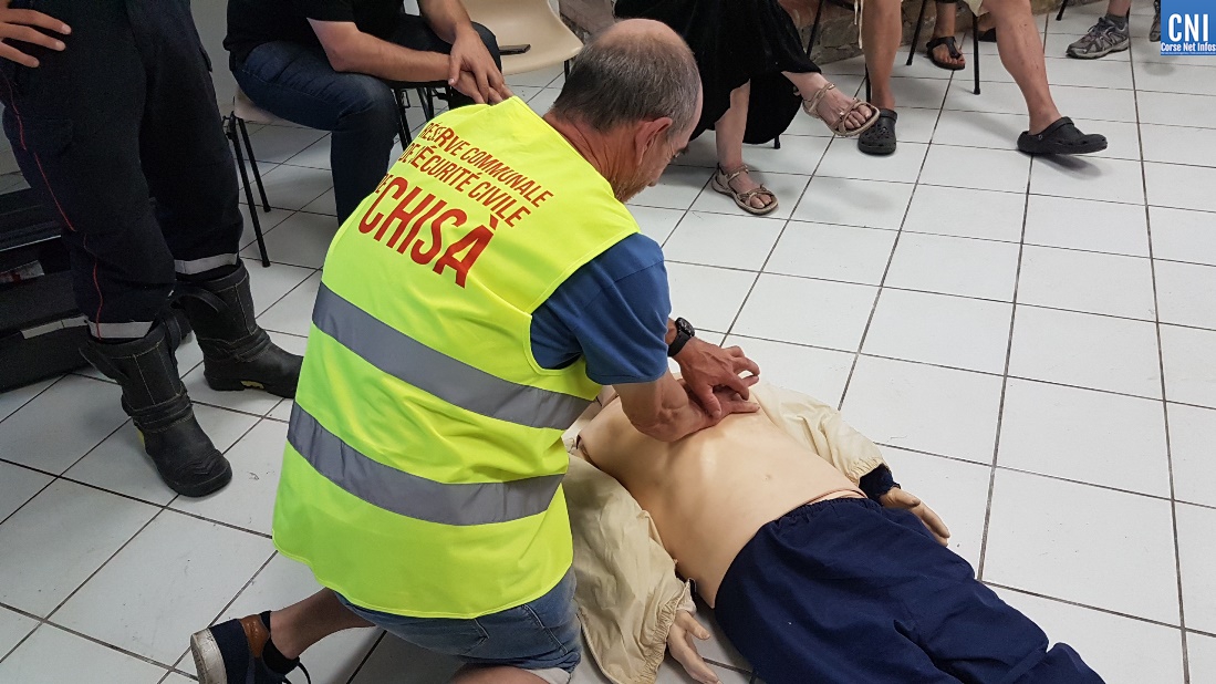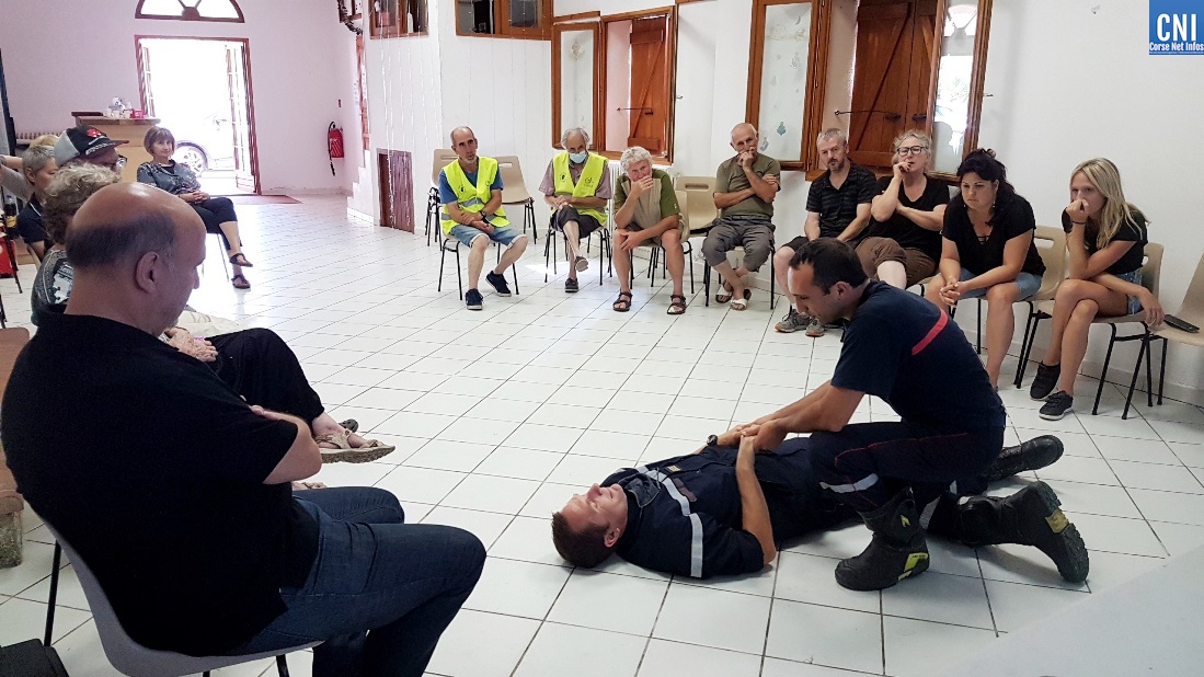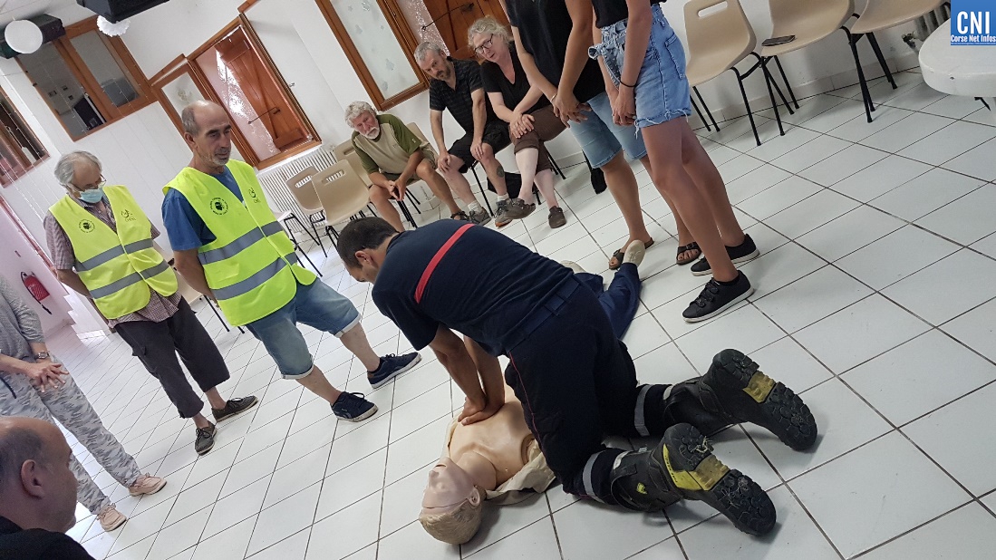 Après ces échanges menés tant sur la forme que sur le fond, le Caporal-Chef Jean Castres, moniteur de secourisme du SIS 2B, s’est appliqué avec beaucoup de pédagogie à rappeler les fondamentaux des gestes qui peuvent sauver des vies. A l’appui de démonstrations pratiques, réalisées avec le concours du Capitaine Jean-Christophe Bourdin, le formateur a ensuite convié les bénévoles à répéter à leur tour, les bonnes pratiques dans une ambiance à la fois bon enfant et appliquée. Le maire, Michel Galinier présent du début jusqu’à la fin, se prêtait lui aussi de bonne grâce au jeu des questions- réponses.