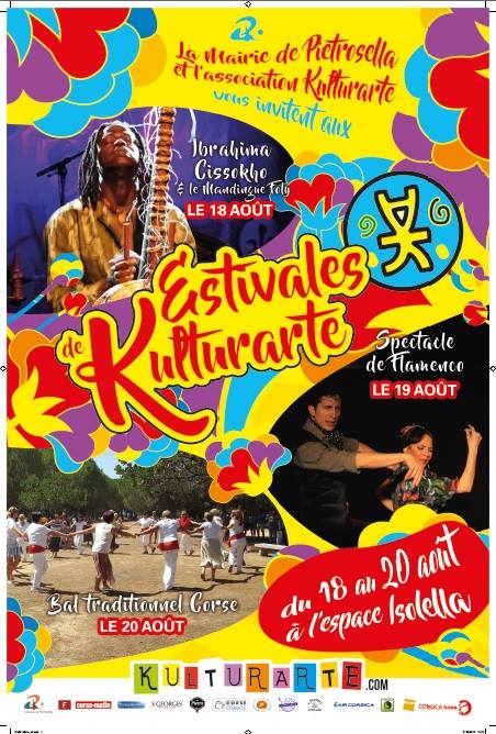 1ère édition du nouveau festival d’été « Les estivales de Kulturarte » du 18 au 20 août à l’Espace Isollella, présentée par l’association Kulturarte et la mairie de Pietrosella. Un évènement qui sera exclusivement consacré à la musique avec 3 soirées aux univers musicaux très différents.