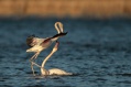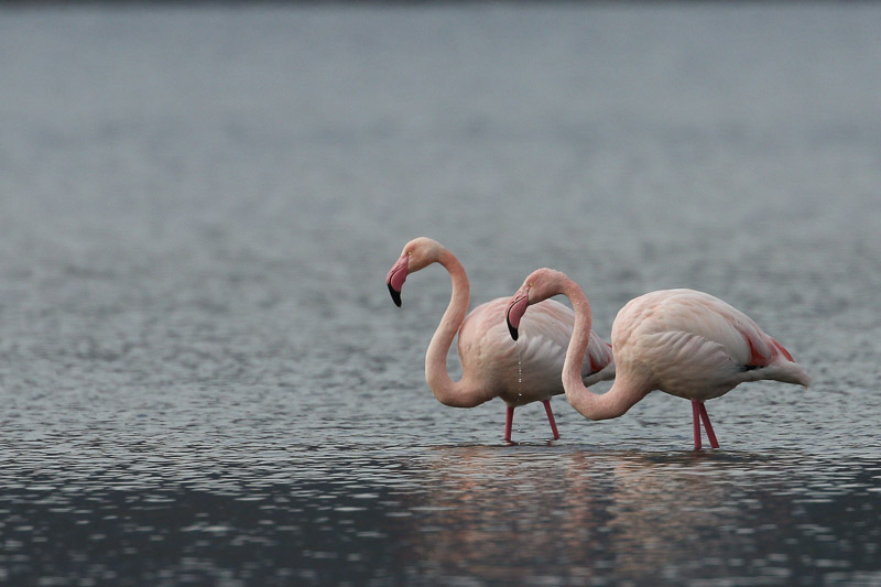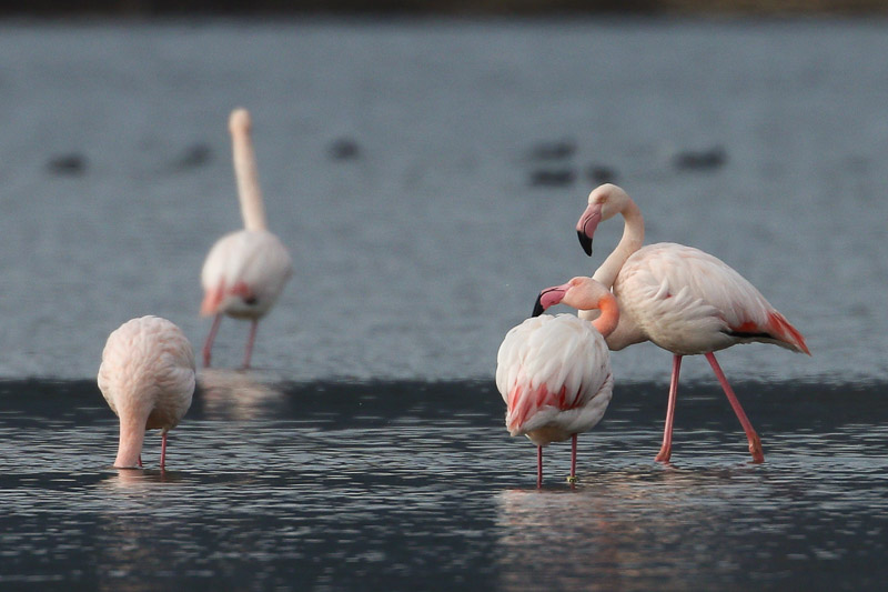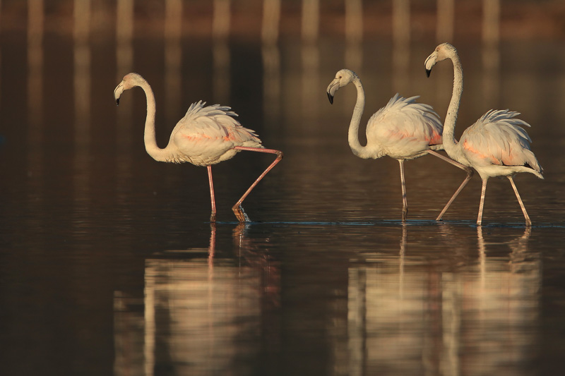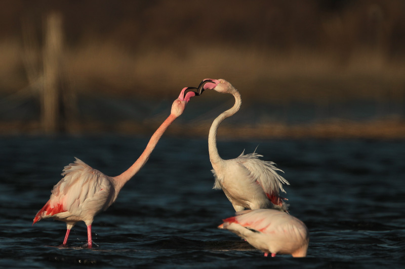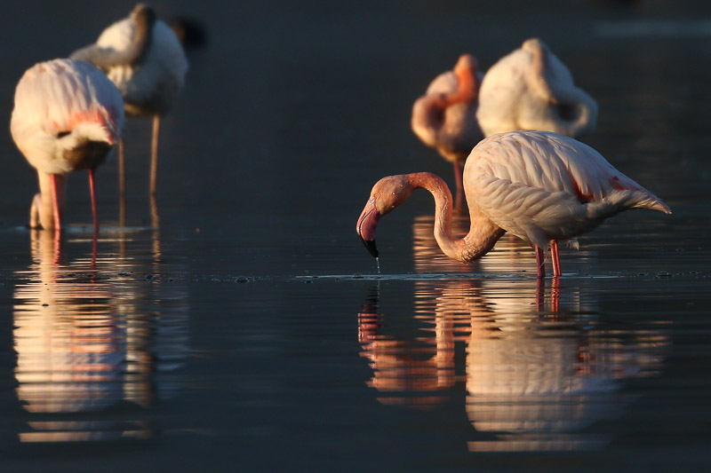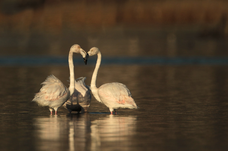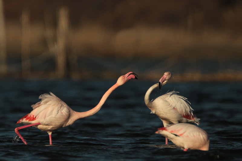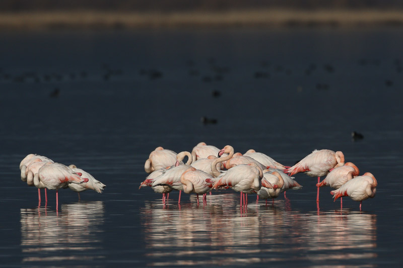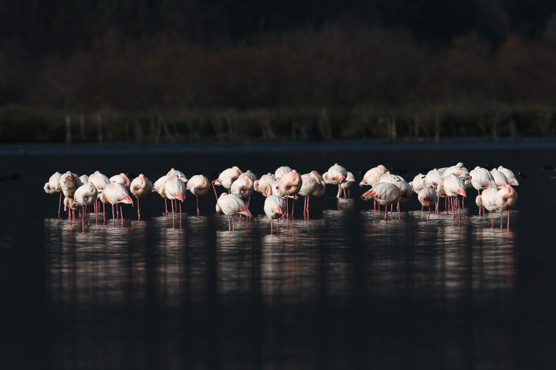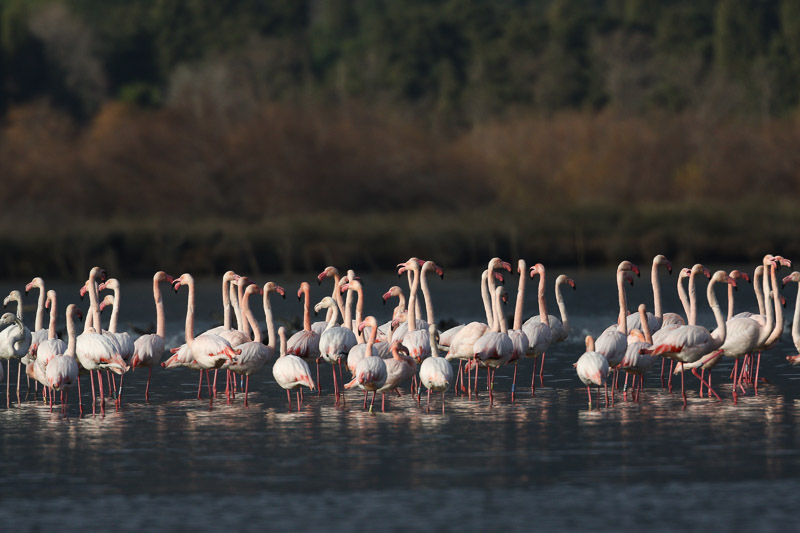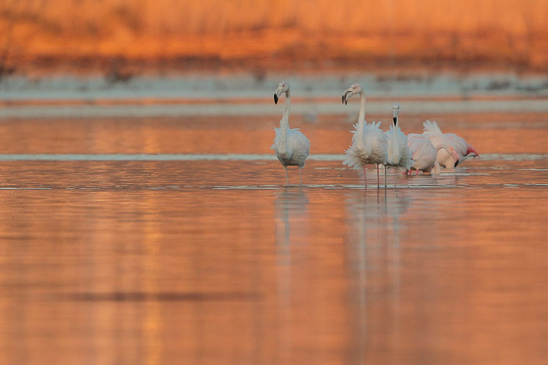 Les premiers rayons du soleil éclairent un groupe de Flamants sur l'étang de Bigiguglia : c’est magique. Ils s’activent alors et se déplacent à l'envi. Chaque année, les Flamants roses viennent, par centaines, hiverner chez nous. Ces quelques mois sont une réelle opportunité pour les observer et se régaler du spectacle. Ils repartiront prochainement nicher en Camargue pour la plupart d’entre eux. En attendant appréciez images proposées par David Gauthier et René Roger