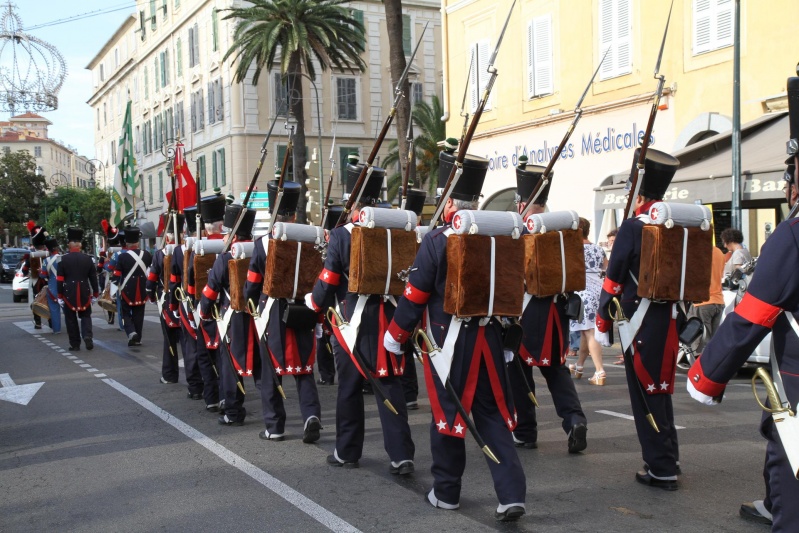 Ce premier défilé est parti du Fossé de la citadelle vers 17 heures, empruntant la rue du roi de Rome, les avenues Eugène Machini, du 1er Consul, et Antoine Serafini, pour s’arrêter Place Foch où Simon Renucci passé en revue les troupes impériales et suisses.