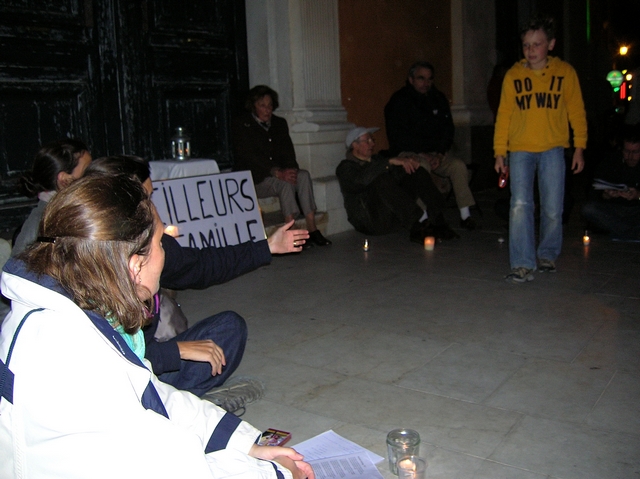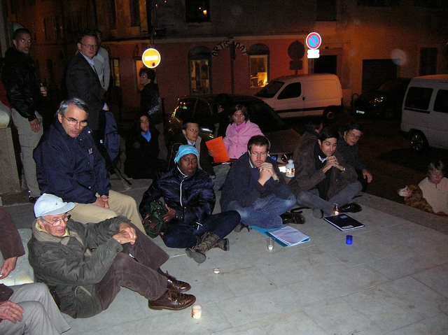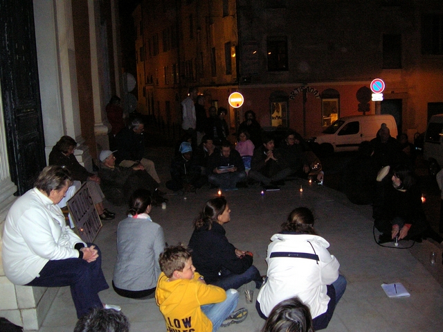 C'est dans le cadre d'une veillée méditative et pacifiste que le mouvement spontané des "Veilleurs Corses" a rassemblé environ 60 personnes à Ajaccio pour protester contre l'adoption très récente de la loi Taubira. (Photo : Yannis-Christophe Garcia)