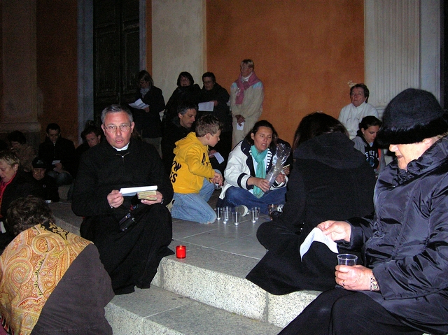 Par ailleurs, même si l’Eglise de Corse n’est pas à l’initiative de ce mouvement, l’Evêque d’Ajaccio, Mgr Olivier de Germay, a soutenu cette démarche et a rejoint les participants devant la cathédrale peu de temps après le début de la veillée pour accompagner cette veillée initiatique.