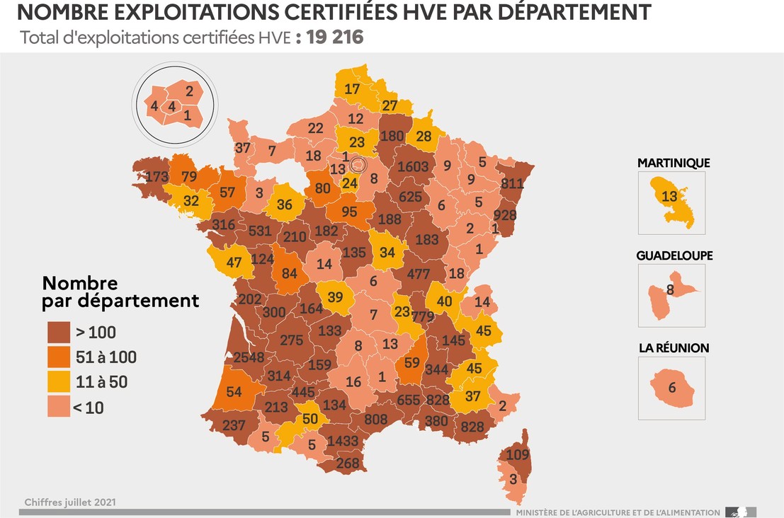 La Haute Valeur Environnementale correspond au troisième niveau, le plus élevé, de la certification environnementale des exploitations agricoles. Cette certification d’exploitation est une démarche volontaire et s’appuie sur des obligations de résultats mesurées par des indicateurs de performances environnementales. Elle est accessible à toutes les filières et est construite autour de quatre thématiques environnementales :