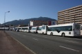 La longue file réservée aux véhicules d'urgences, aux taxis et aux bus était inutilisable lundi après-midi. La voie de droite, qui part des Salines et prend fin à Castel-Vecchio était immobilisée par des dizaines de bus garés (sans perturber la circulation) le long de la voie par les adhérents du syndicat FO -TCA. Bon nombre d'entres eux se sont rendus dans les locaux de la CAPA pour dénoncer le nouveau système qui, selon leur porte parole, n'est pas compatible avec leur fonction.