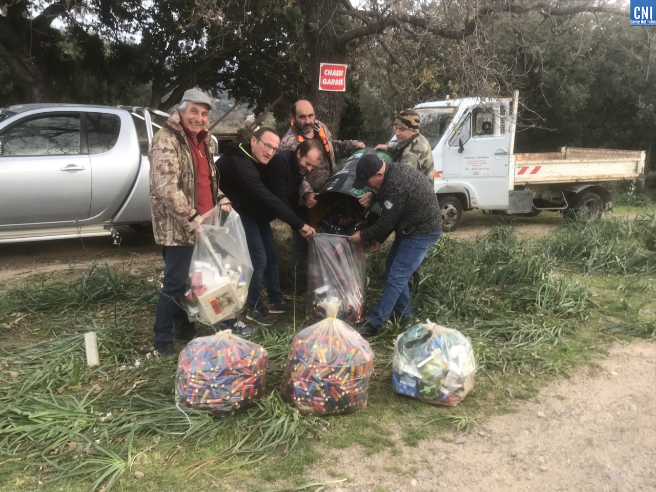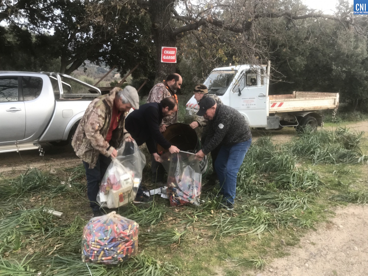 En cette fin de saison de chasse à la grive mais également au sanglier, celle ci ayant été prolongée d'un mois, les chasseurs de la plaine d'Aregnu ont souhaité se mobiliser afin de nettoyer les environs. Récolter les cartouches usagées sur le terrain et permettre également à qui le souhaitait, de les ramasser et les déposer dans des récipients prévus à cet effet.