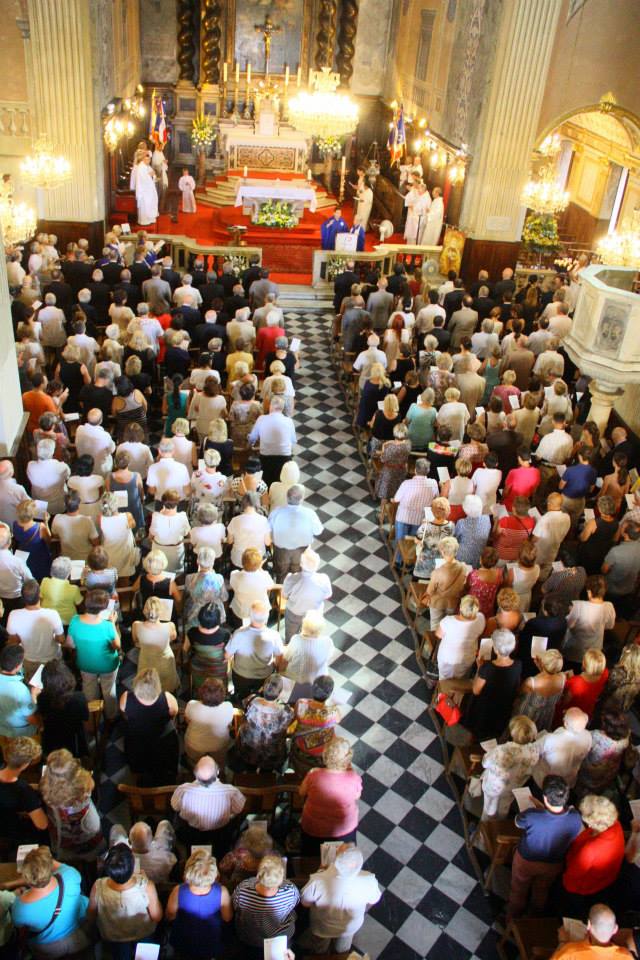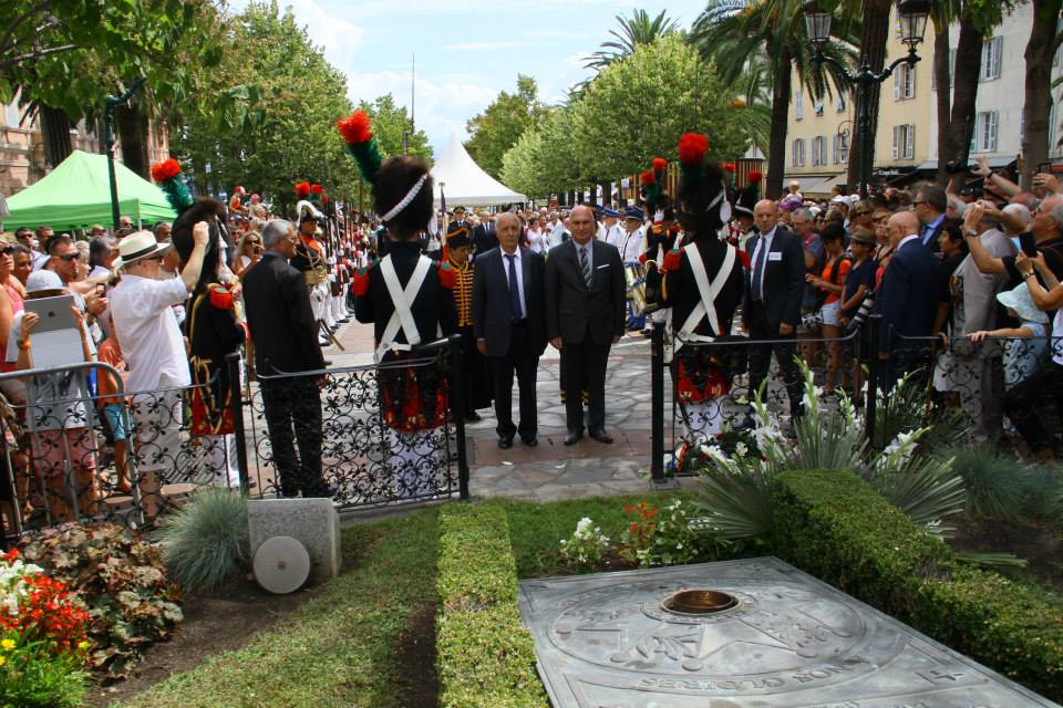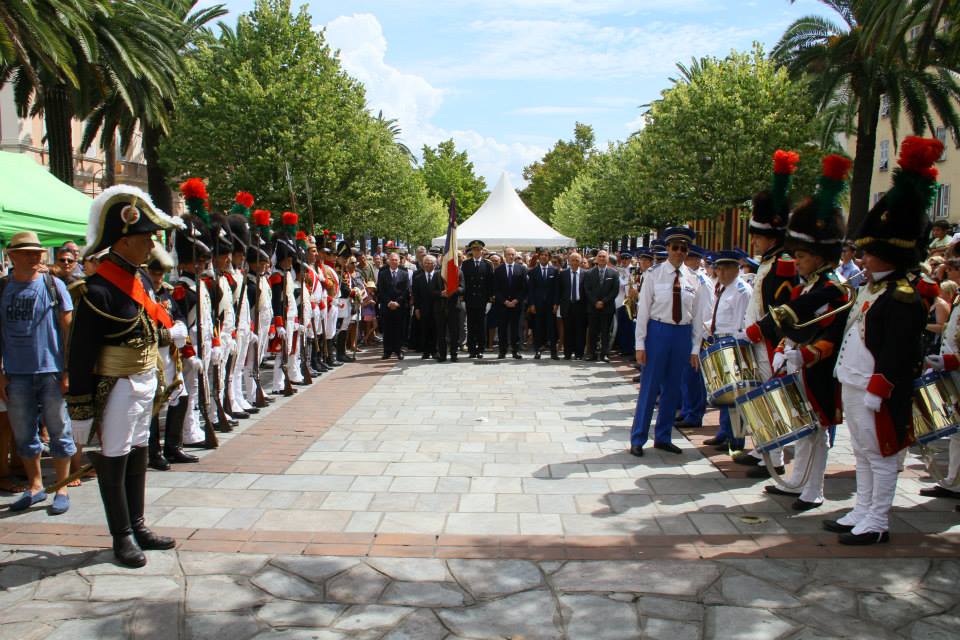 Dès 10 heures , la grand-messe de Notre-Dame de l’Assomption célébrée par Monseigneur Olivier de Germay en la cathédrale d’Ajaccio, a réuni la population autour de personnalités civiles, militaires, politiques et des représentants d’associations. Vers 11h20, en fin de messe, le cortège parti de la Cathédrale s’est arrêté devant la maison Bonaparte pour rendre hommage à Napoléon Ier, né le 15 août 1769, et où a eu lieu un dépôt de gerbe. Il s’est ensuite rendu place Foch pour le ravivage de la flamme de la légion d’honneur, le tout aux sons de la Musique Municipale et escorté par la compagnie du 2ème Régiment des Chasseurs à Pied de la Garde napoléonienne.