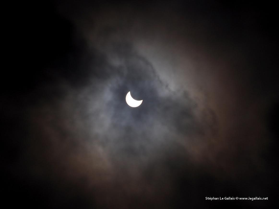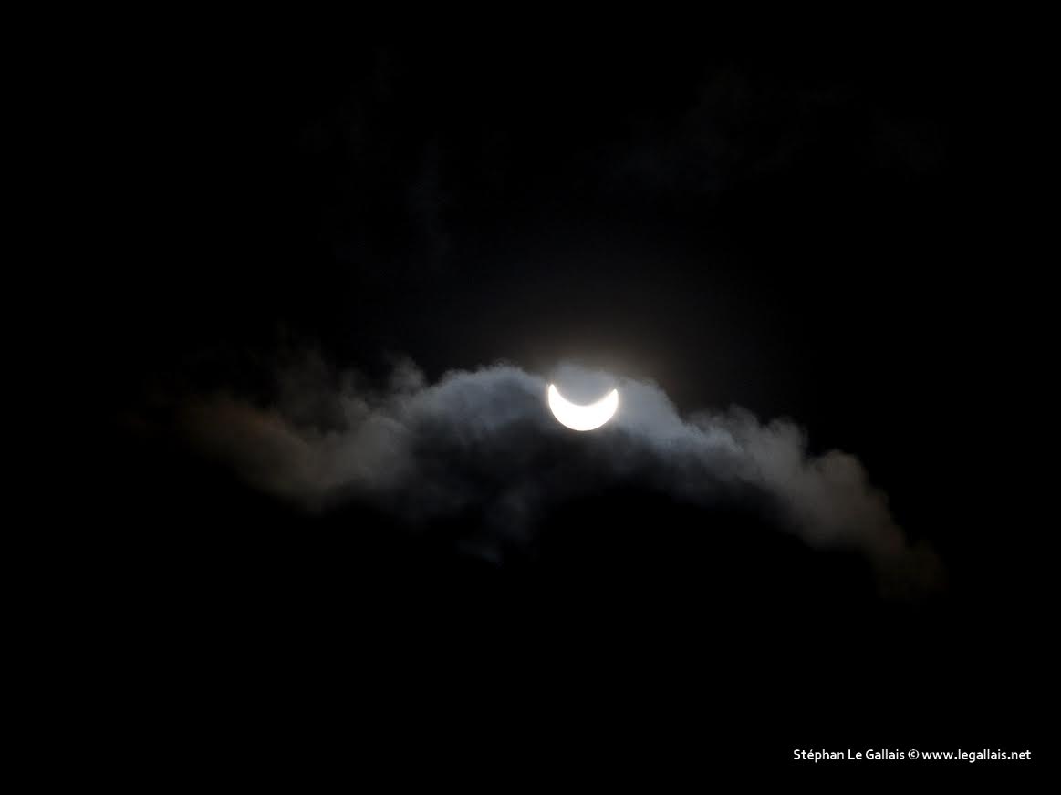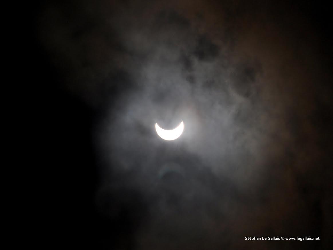 La Lune qui grignote au fur et à mesure le disque solaire : Ce Vencredi matin, le phénomène, rare, n'aura pu être vu que par très peu d'entre nous en direct même protégés derrière nos lunettes en raison des conditions météorologiques qui n'étaient pas idéales. Mais Stéphan Le Gallais, muni du matériel indispensable et du matériel qu'il avait, a pu fixer l'événement qui se déroulait au-dessus de sa tête et depuis Bastia entre 9h30 et 10h28. et nous le restituer. Voici ses clichés. A voir aussi le time lapse réalisé à Agosta-Plage par Franck Fougère-Gnagni