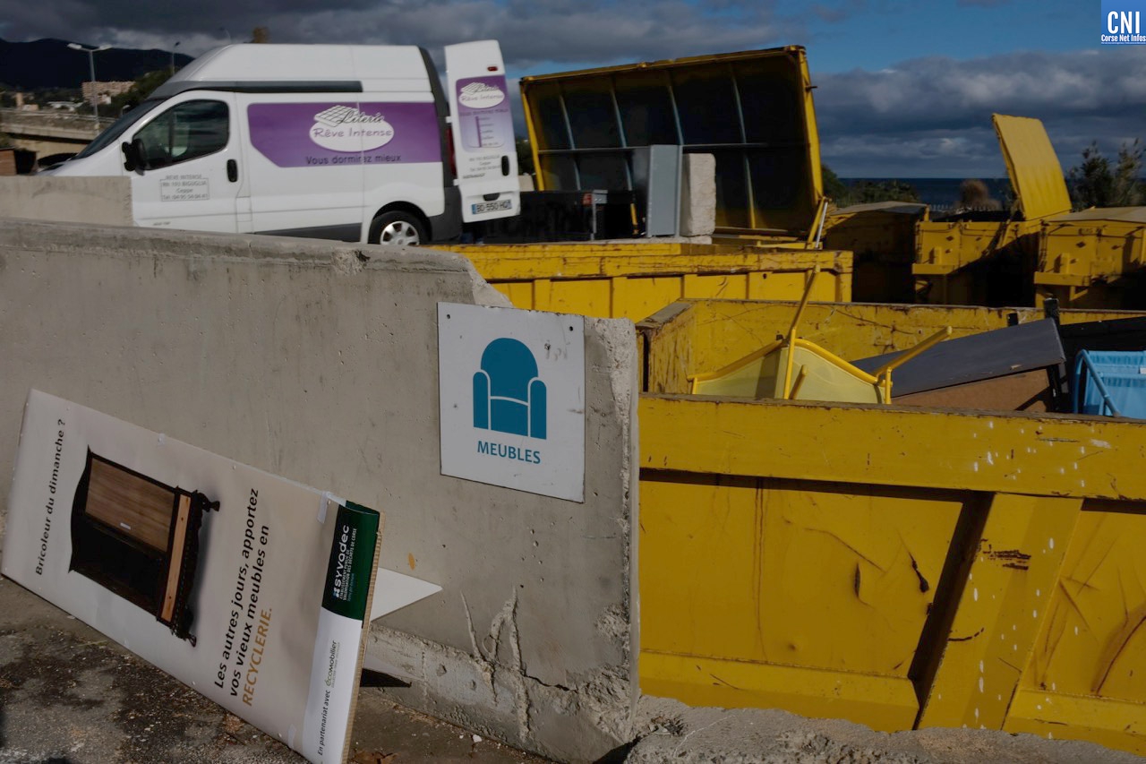 « Le meuble étant une filière qui fonctionne déjà très bien depuis 2013 » nous dit Frédéric Desanti, chargé de secteur, présent pour expliquer l’enjeu de cette campagne. A proximité des bennes de récupération de la déchetterie de Bastia, à l’Arinella, il poursuit : « la filière meuble permet de recycler des matières comme le bois, la ferraille à laquelle s’ajoute aujourd’hui les textiles comme les traversins, oreillers, etc. En partenariat avec la filiale Eco-Mobilier sur le continent, nous apportons des solutions pour la collecte et la valorisation des meubles usagés, en leur offrant une deuxième vie, en les recyclant ou en les utilisant comme source d’énergie. » A ses côtés, Mélanie, du service communication, confirme : « Avant 2013, les meubles partaient à l’enfouissement. Ils étaient récupérés parce qu’on avait l’habitude d’appeler “Les Monstres” pour être ensuite enfouis. Aujourd’hui la filière meuble représente ¼ du tri soit près de 8000 tonnes par an ! »