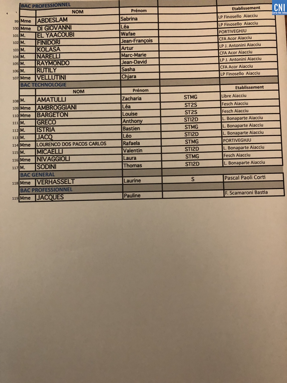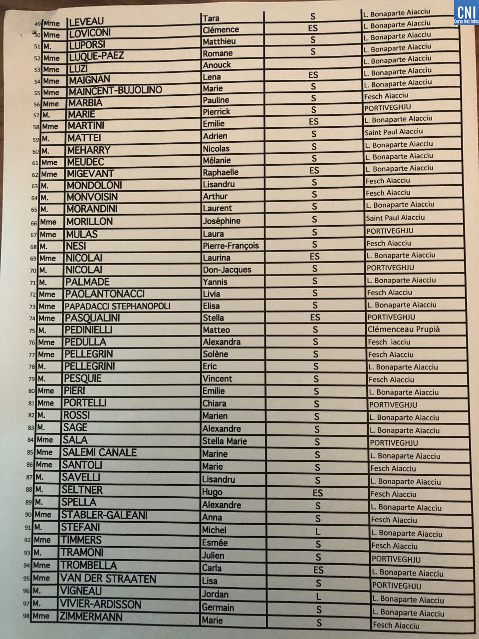 « Même si nous sommes convaincus de notre travail au quotidien, c’est lorsque nous voyons vos visages et que nous voyons le travail que vous avez fourni, que nous sommes plus que jamais prêts à œuvrer pour vous qui êtes l’avenir de la Corse, s’est exprimée émue Josepha Giacometti, conseillère exécutive chargée de l’enseignement secondaire, de l’enseignement supérieur et de la recherche. Vous choisirez peut être de poursuivre vos études ailleurs, enrichissez votre expérience et nous espérons de tout cœur que vous ramènerez votre savoir faire en Corse. Nous travaillons aujourd’hui avec nos élus pour vous permettre de travailler et vivre dignement sur notre île. Profitez de la vie, soyez libres de vos choix, acceptez vos échecs, cela arrive et vous renforcera ».
