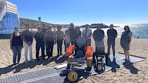 La journée s’est poursuivie avec une démonstration sur la plage par l’association Cap Corse handicap pour l’aménagement d’espace de baignade. Deux fauteuils sont mis à disposition des personnes handicapées : un mobishare et un hippocampe, l’un permettant de transporter une personne jusqu’à la mer en roulant sur un tapis déroulant fixe d’une trentaine de mètres le long de la plage, et l’autre flottant dans l’eau. Ce dispositif permet un véritable chemin d’accès, pour tout le monde. « Le but ici est de mettre les moyens pour que tout le monde puisse aller à l’eau » explique Éric Valery, le président de l’association. « Il s’agit d’un dispositif intéressant pour aider les personnes qui en ont besoin. » Des volontaires du service civique aideront l’association ainsi que des membres de l’association Valincap. Un emploi sera également créé dans le secteur pour s’occuper du matériel et surveiller.