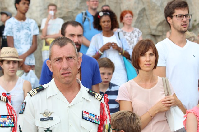 Parmi elle, on notait la présence du maire de Calvi Ange Santini, entouré de Marie Luciani, adjointe à la culture, de Jean-Louis Delpoux adjoint à l'urbanisme, du colonel Jean de Monicault, chef de corps du 2e REP de Calvi et de son adjoint le lieutenant-colonel Favrot, le capitaine Tanasoiu....