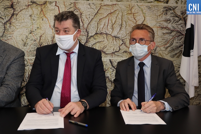 Signature de la convention de partenariat par le préfet de Haute-Corse François Ravier et le directeur de la DDFP Ludovic Robert
