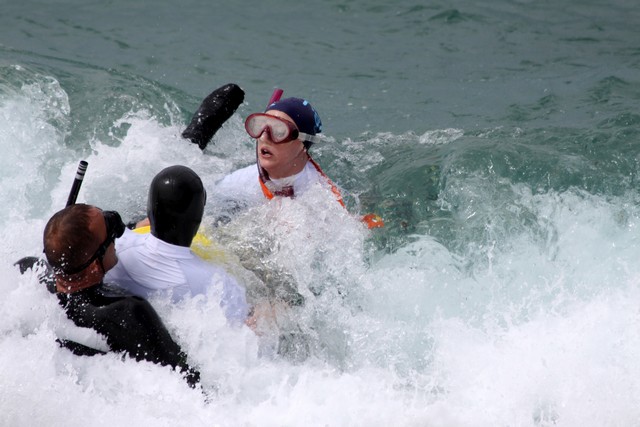 Il y avait effectivement du vent qui soufflait en rafales à plus de 50 km/h et une houle bien formée, bref tout ce que les instructeurs souhaitent trouver pour former des spécialistes.