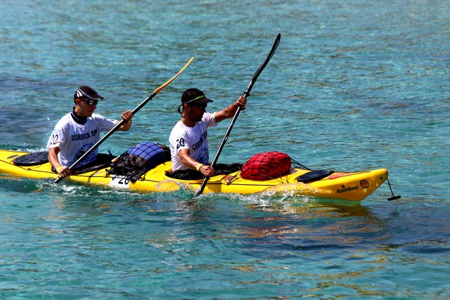 Ce dimanche matin, à Ostriconi, quelques problèmes techniques donnaient le ton à ce qu'allait être cette journée qui débutait par une épreuve de kayak de mer de 35 km , (les concurrents ont du porter leurs kayak car la route d'accès à la plage était fermée), en direction de la Marine de Sant'Ambroggio qui se déroulait dans de bonnes conditions.