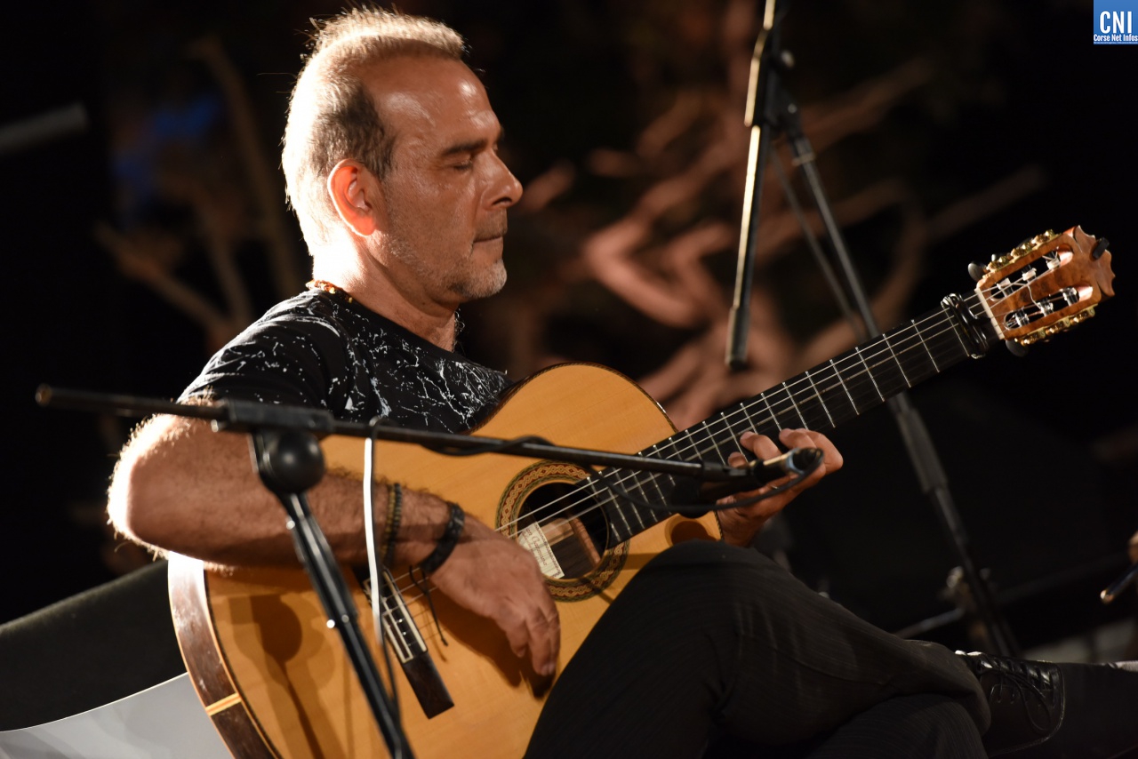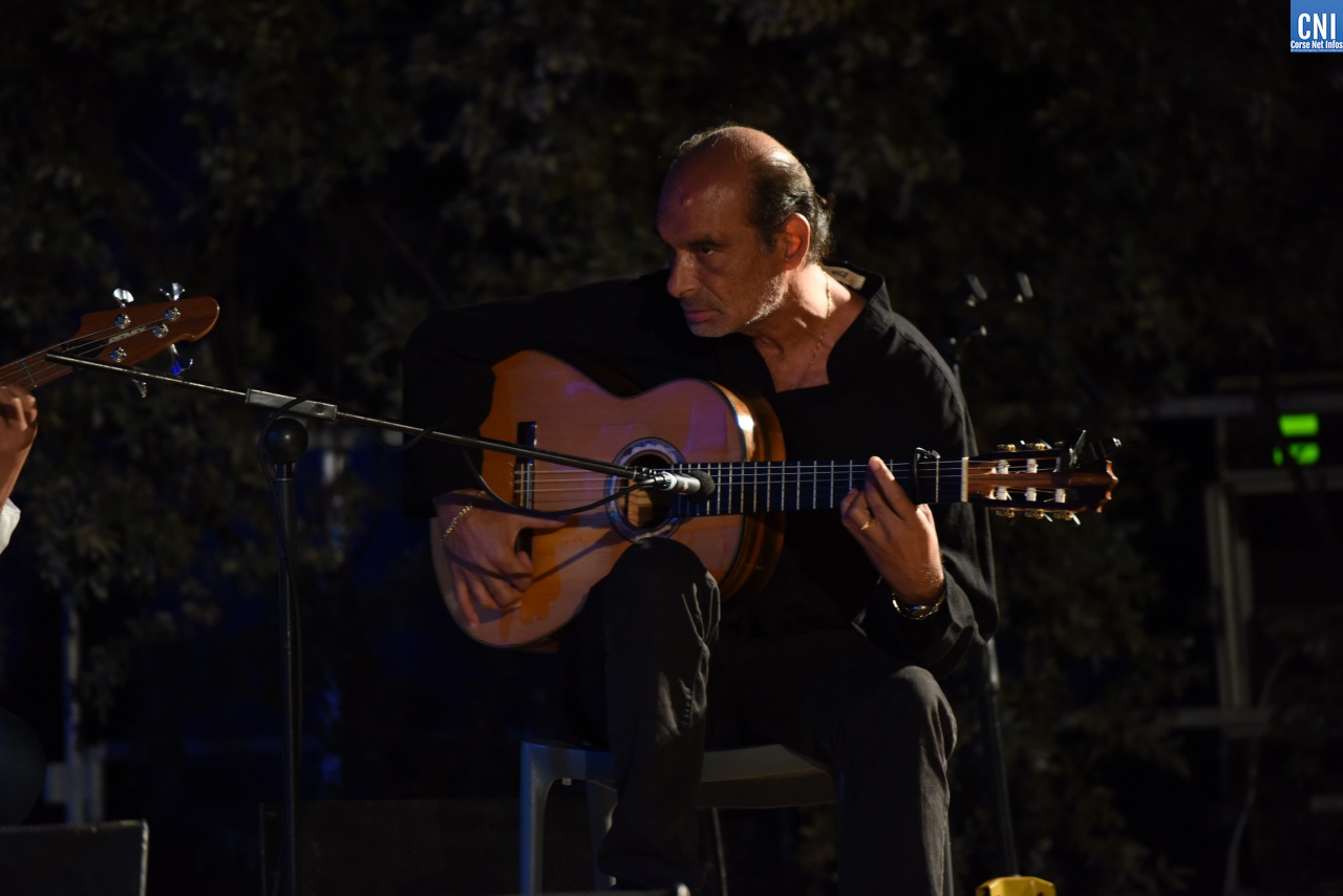 - Je suis venu en Corse pour la première fois, je crois au début des " Nuits de la guitare" à Patrimoniu. J’ai adoré ce concept de concert en pleine nature et sa relation avec la musique. Il y a 2 ans, j'y ai rejoué, juste après un concert à Hawaï. Mais sincèrement, il n’y a pas besoin de faire le tour du monde pour découvrir des endroits merveilleux. Je suis vraiment très « aficionado » à la Corse. C’est pour moi un grand plaisir d’y jouer. Pour mes musiciens également. Ils ont senti quelque chose dans l’atmosphère qui leur a donné envie de tout donner. Il y a aussi quelque chose de très familial chez les Corses. Comme nous les gitans. Nous sommes très famille. Et bien sûr les Corses adorent la guitare. Et j'y ai rencontré de nombreuses personnes de talent, comme le groupe A Filetta.