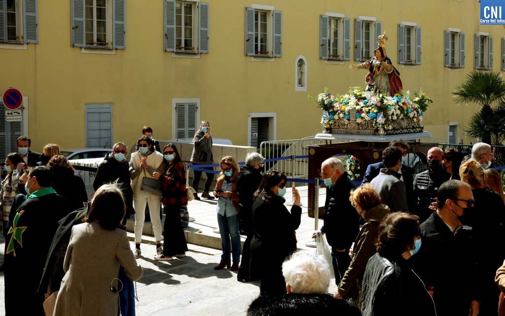 En effet quelques policiers étaient venus s’assurer que les règles d’usage n’étaient pas transgressées. Malgré ces conditions très particulières, de nombreux Ajacciens et les confréries ont pu célébrer la Sainte Patronne de la ville impériale.