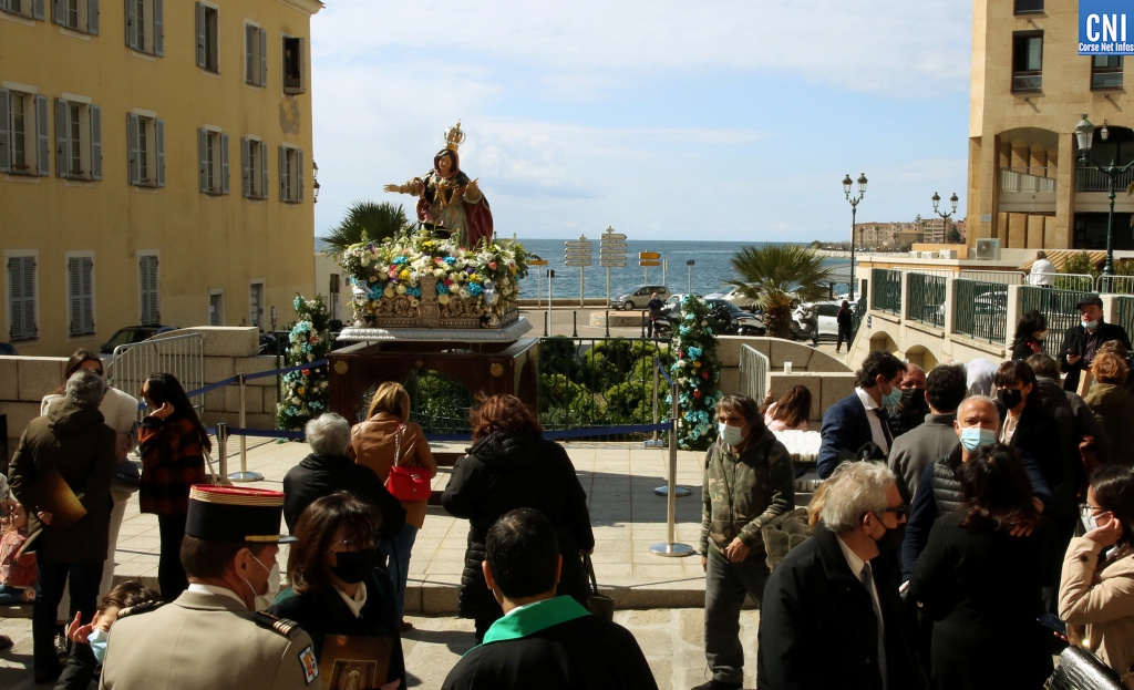 La Madonuccia a été célébrée à Ajaccio ce 18 mars 2021 dans un climat particulier en raison de la crise sanitaire. Les célébrations de la matinée se sont déroulées dans la sérénité avec la présence de nombreux fidèles dont le maire d’Ajaccio Laurent Marcangeli et le Préfet de région Pascal Lelarge.