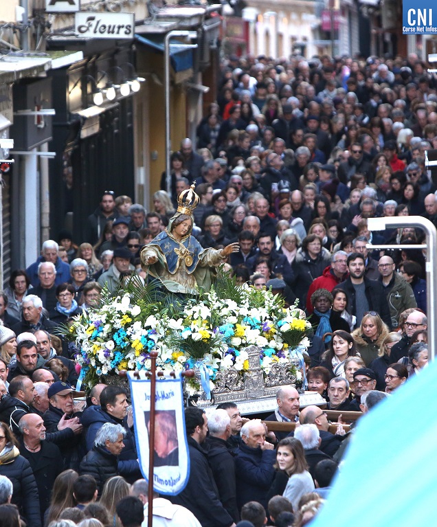 Après les cérémonies de la veille place Foch, les festivités ont repris ce dimanche matin à 10 heures, par la messe pontificale à la cathédrale d'Ajaccio présidée par Monseigneur Sebastiano Sanguinetti, Evêque de Tempio-Ampurias en Sardaigne et Monseigneur Olivier de Germay, Evêque de Corse.