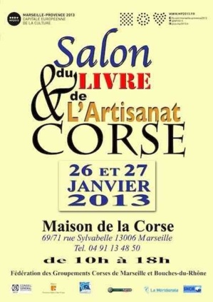 Salon du Livre et de l'Artisanat Corse : Samedi 26/01 de 10h à 18h30 et Dimanche 27 janvier 2013 de 10h à 17h. Maison de la Corse : 69 rue Sylvabelle 13006 Marseille, 04 91 13 48 50.
