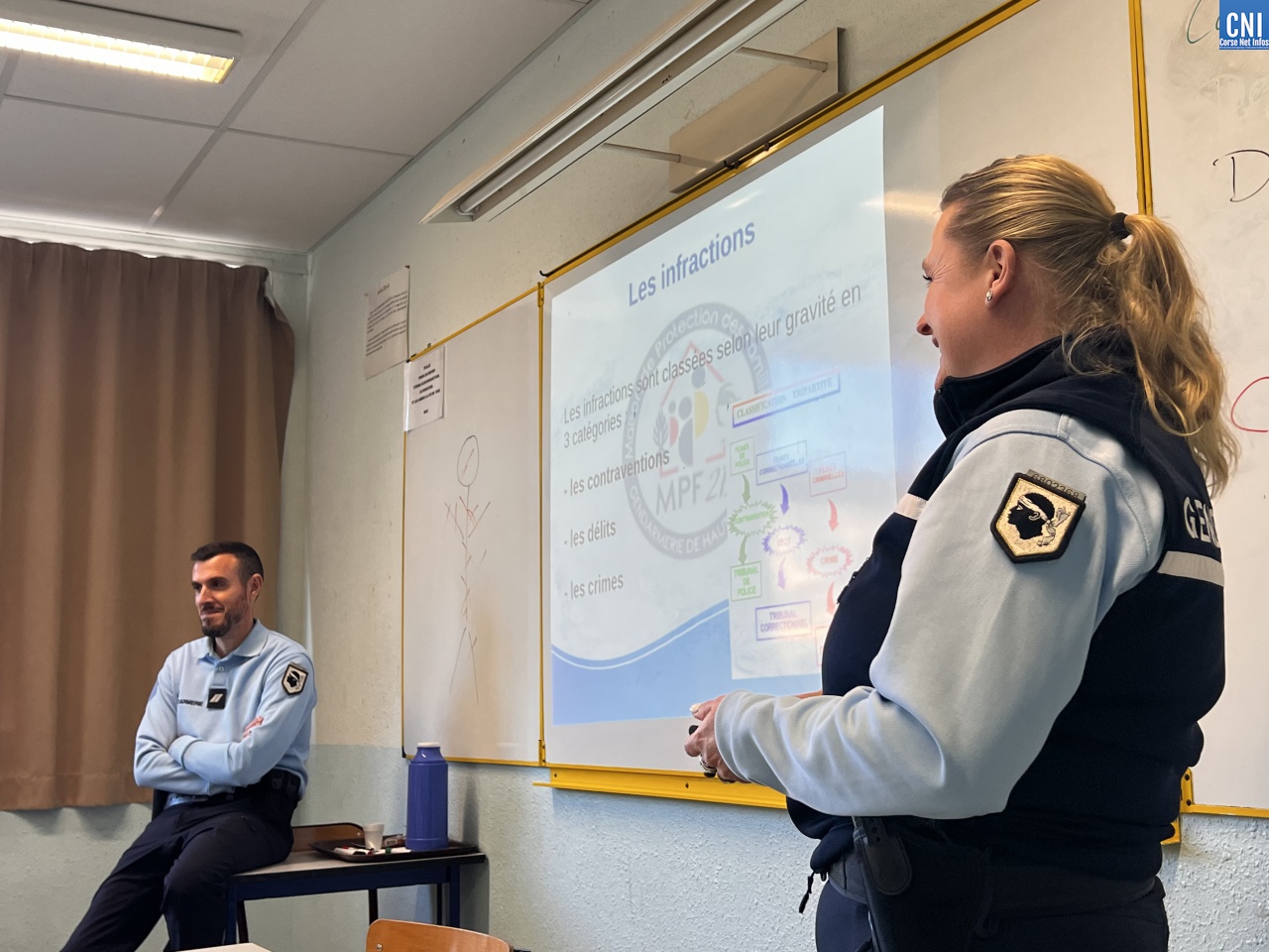 " C’est une action de prévention et d’informations sur les différentes violences, qui nous a été demandée par le collège de Calvi et les forces de gendarmerie. Après certains évènements, Ii était nécessaire de faire un petit rappel de la loi et sur les différents styles de violences. Comme le harcèlement, et cyber harcèlement, les jeux dangereux, les challenges" explique la maréchale des logis-chef Aurore Swierczewski