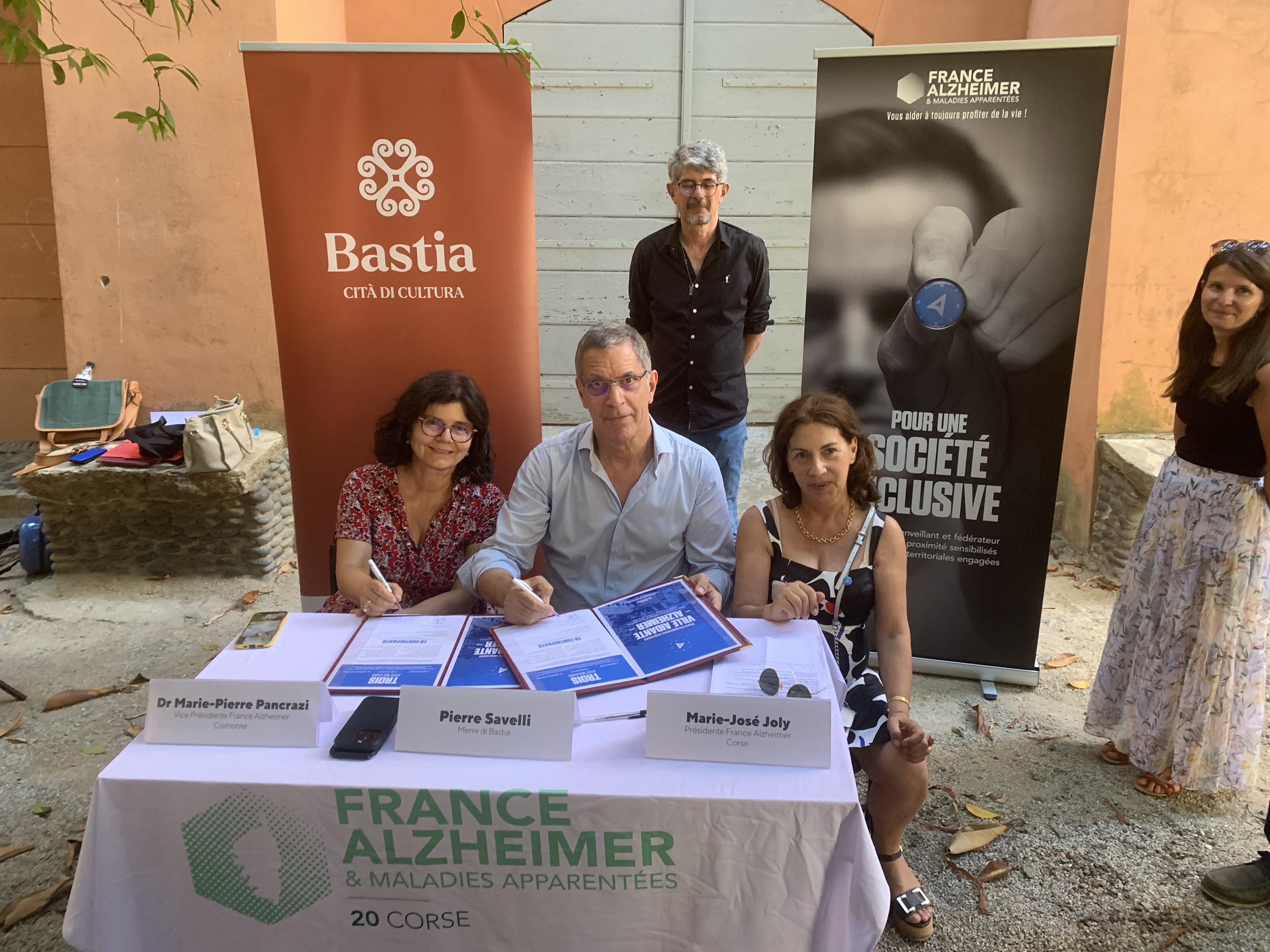 Lors de cette signature, sur fond musical d’élèves du conservatoire de Bastia, le maire de Bastia a rappelé que dans le cadre du Contrat Local de Santé, la Ville de Bastia s’est engagée depuis plusieurs années aux côtés du docteur Marie-Pierre Pancrazi, vice-présidente de l’antenne régionale de France Alzheimer pour la Haute-Corse, pour réaliser des actions faveur des personnes atteintes par la maladie d’Alzheimer et de leurs proches aidants. Mais en signant cette charte, la ville veut aller encore plus loin, élargir son champ d’action à travers plusieurs actions. « À travers l’adhésion à la charte « Ville aidante Alzheimer », aux côtés de l’Association France Alzheimer, la municipalité signifie sa volonté de poursuivre les travaux du CLS et de favoriser l’inclusion des personnes atteintes de la maladie d’Alzheimer ou d’une maladie apparentée au sein de la commune » souligne Pierre Savelli.