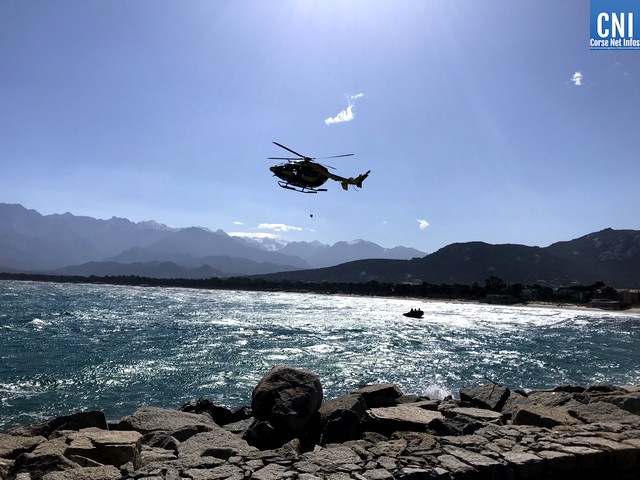 Un exercice qui s'est déroulé au dessus du plan d'eau de Calvi et qui a attiré la grande foule persuadée que par ce temps quelqu'un se trouvait réellement en difficulté, mais fort heureusement il n'en était rien.