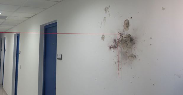 A la caserne de Montesoro, le ministre, entouré des représentants des autorités judiciaires et policières et de seulement deux élus, le maire de Bastia, Emile Zuccarelli, et le député Sauveur Gandolfi-Scheit, a fait le tour du bâtiment pour évaluer les dégâts de l’extérieur. Puis, il a visité les salles touchées, apprécié les impacts sur les murs et écouté les explications des gendarmes qui ont matérialisé la trajectoire du tir par un fil rouge reliant les vitres ciblées à la trace de l’impact sur le mur d’un couloir intérieur. Selon Manuel Valls, la roquette serait « une roquette anti-char de fabrication serbe dotée d'une capacité de pénétration très importante, un projectile qui n'a pas été utilisé en Corse depuis 2009 ».