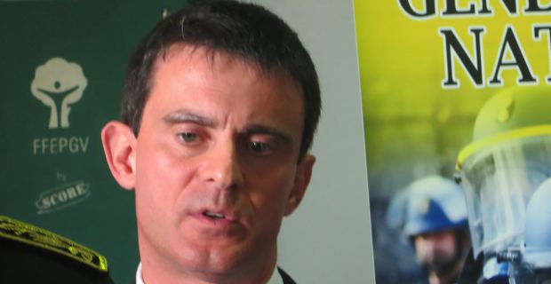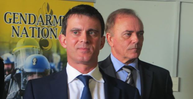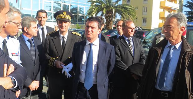 Le ministre de l'intérieur, Manuel Valls, à la caserne du groupement de gendarmerie de Haute-Corse.