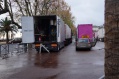 Des barrières ont été dressées pour délimiter le terrain réservé à la grande roue qui va devenir l’attraction de ce marché de Noël un peu particulier. Plusieurs camions sont déjà stationnés à l’entrée de la place et, à peine garés, ils sont déchargés par une dizaine d’ouvriers sous le regard attentif des pompiers – le Service Départemental d'Incendie et de Secours doit contrôler l’installation – et du personnel de Mairie.