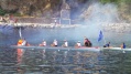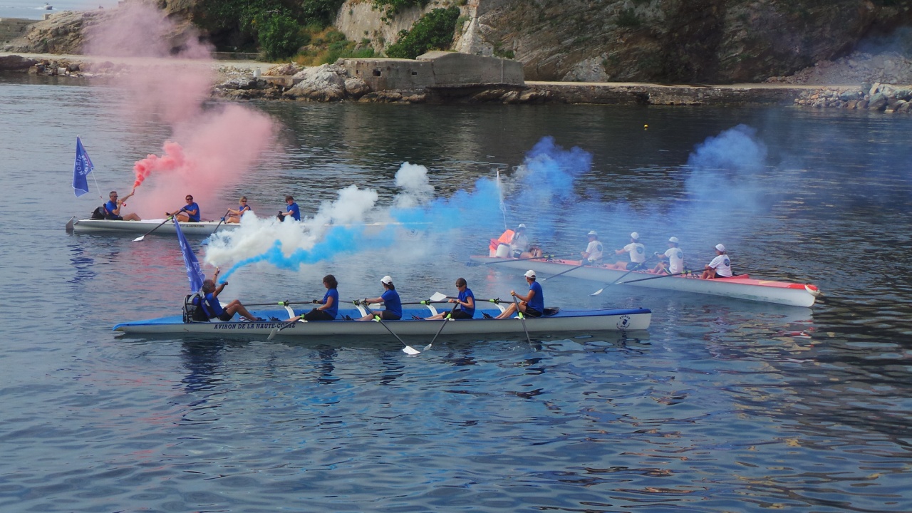 Un peu plus de 60 heures plus tard - samedi matin vers 10 heures - l'équipe féminine, bandera fumigènes bleu et blanc au vent, franchissait la passe du vieux-port, précédée par la vedette de la SNSM de Bastia et escortée par des membres du Club d’aviron de Haute-Corse après que les bateaux à quai au port de commerce aient salué, comme il convient, leur courage.