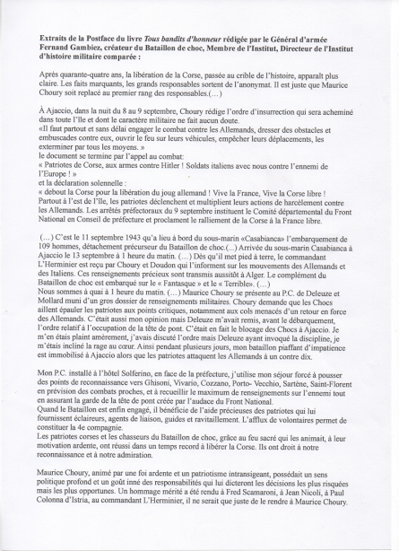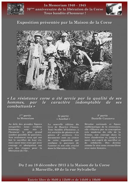 Maurice Choury a été l'auteur, peu après guerre, d'un ouvrage, dont le titre "Tous Bandits d'Honneur" a inspiré l'intitulé de notre manifestation. Ce livre fait encore autorité sur la résistance en Corse, et a été réédité encore cette année.