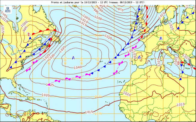Températures maximales comprises entre 12 et 15 degrés sur le pourtour de l’île, 8 à 10 degrés dans l’intérieur.