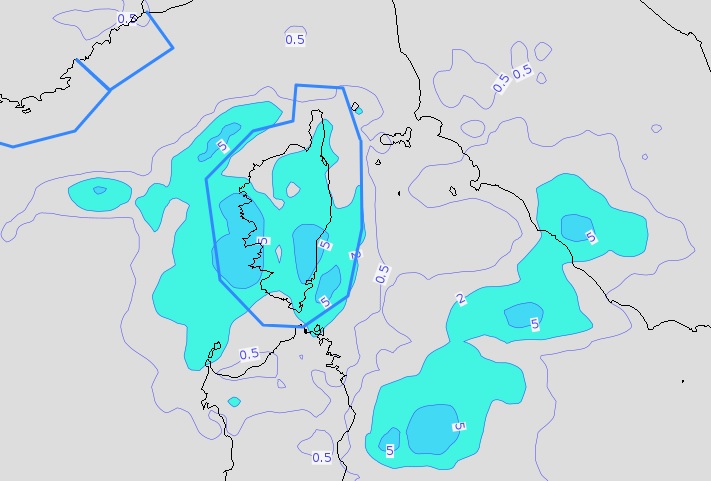 Le temps sera bien ensoleillé même si quelques nuages apparaissent l'après-midi dans le Cortenais. Vent d'Ouest assez fort sur toute la partie occidentale de l’île avec des rafales atteignant 55 km/h. Températures maximales stationnaires : 25 à 28 degrés.