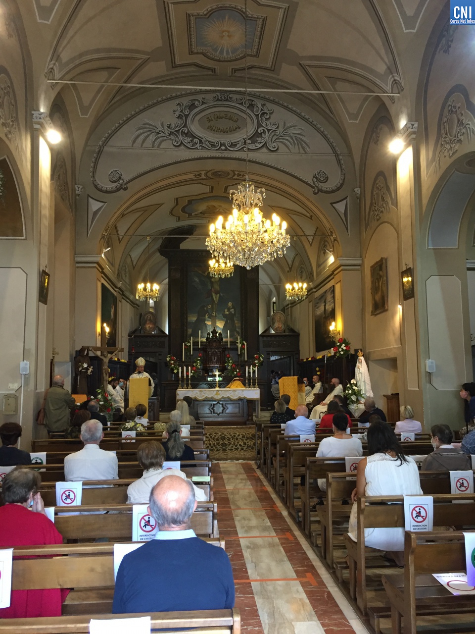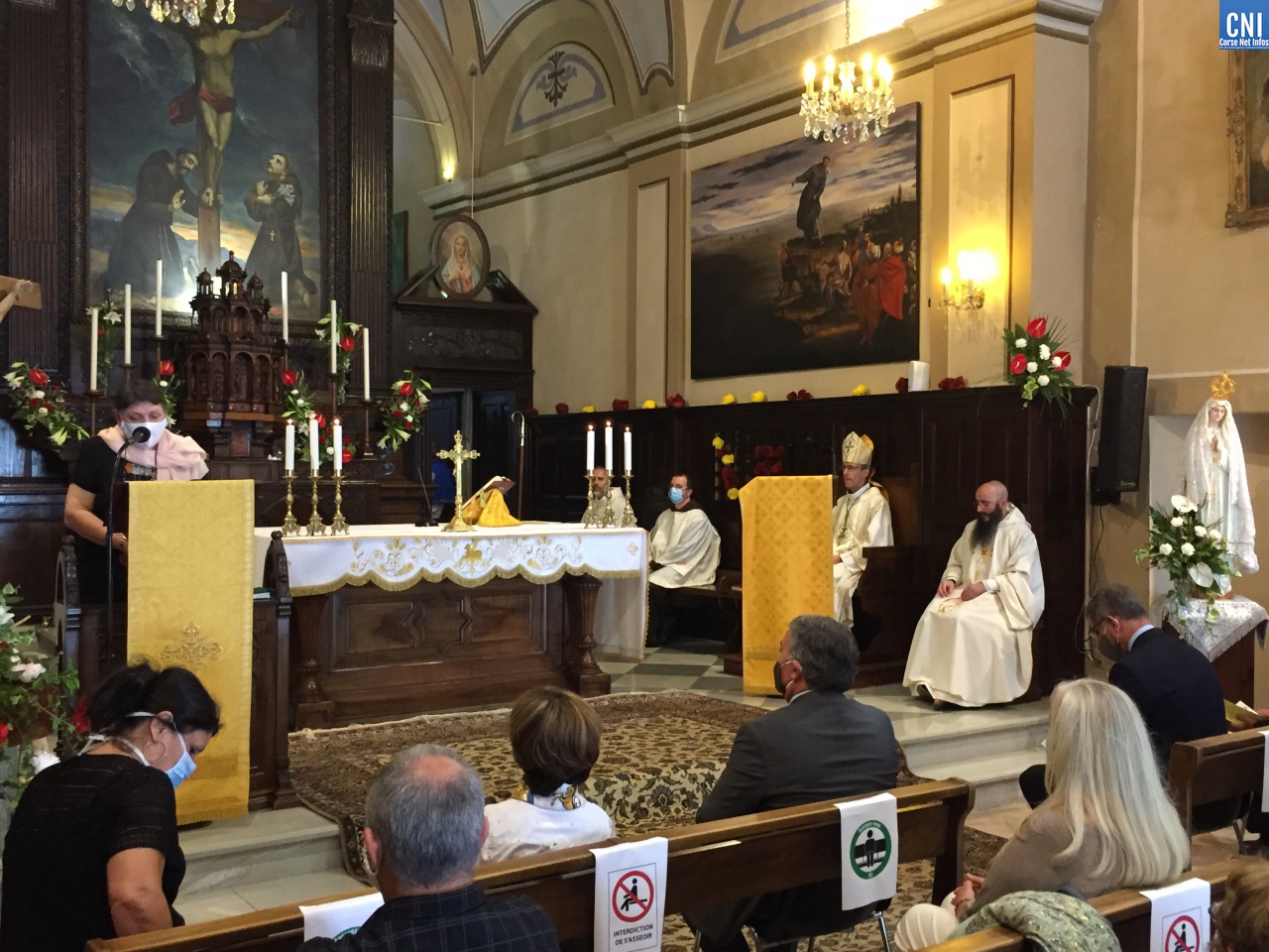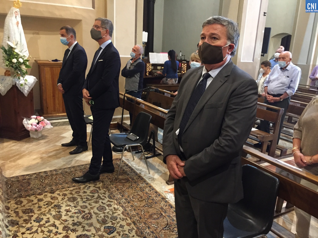 Distanciation oblige, seule une trentaine de personnes avait pu prendre place dans l’église où l’on notait la présence du président de l’Exécutif de Corse, Gilles Simeoni, du maire de la ville, Pierre Savelli, et de quelques uns de ses adjoints.