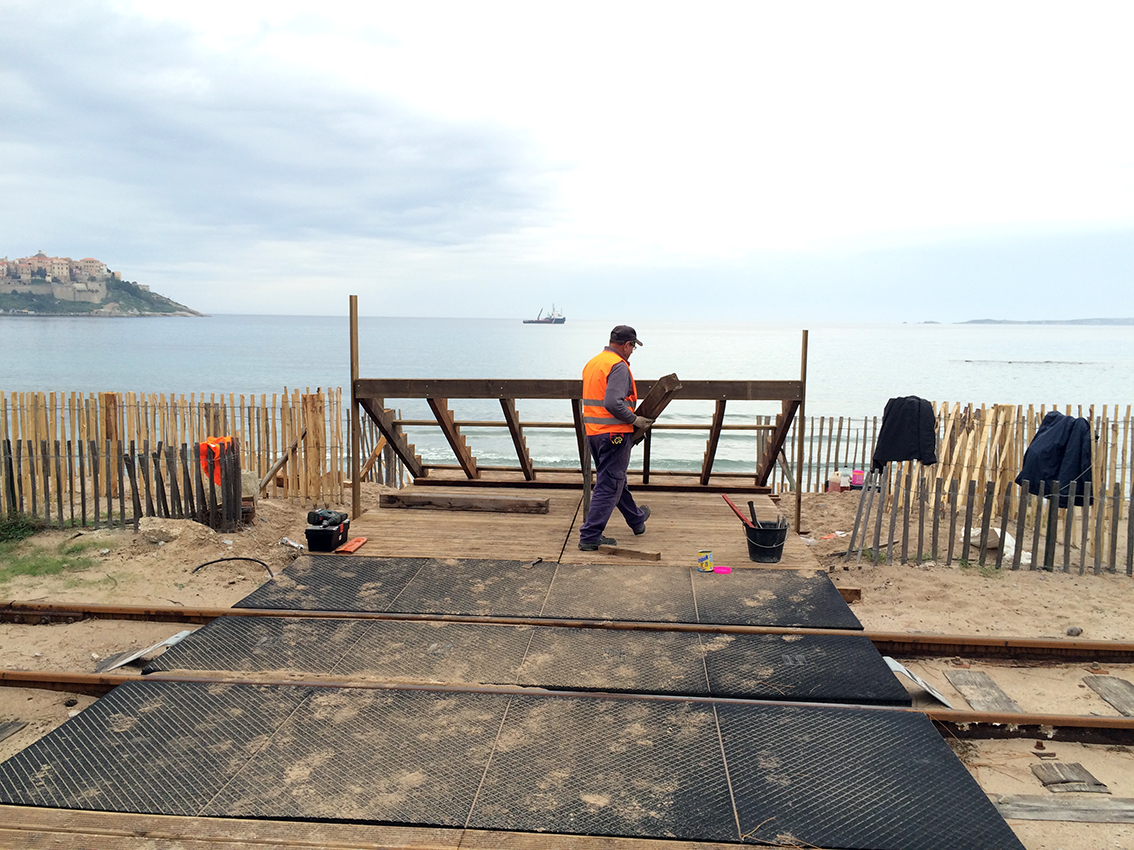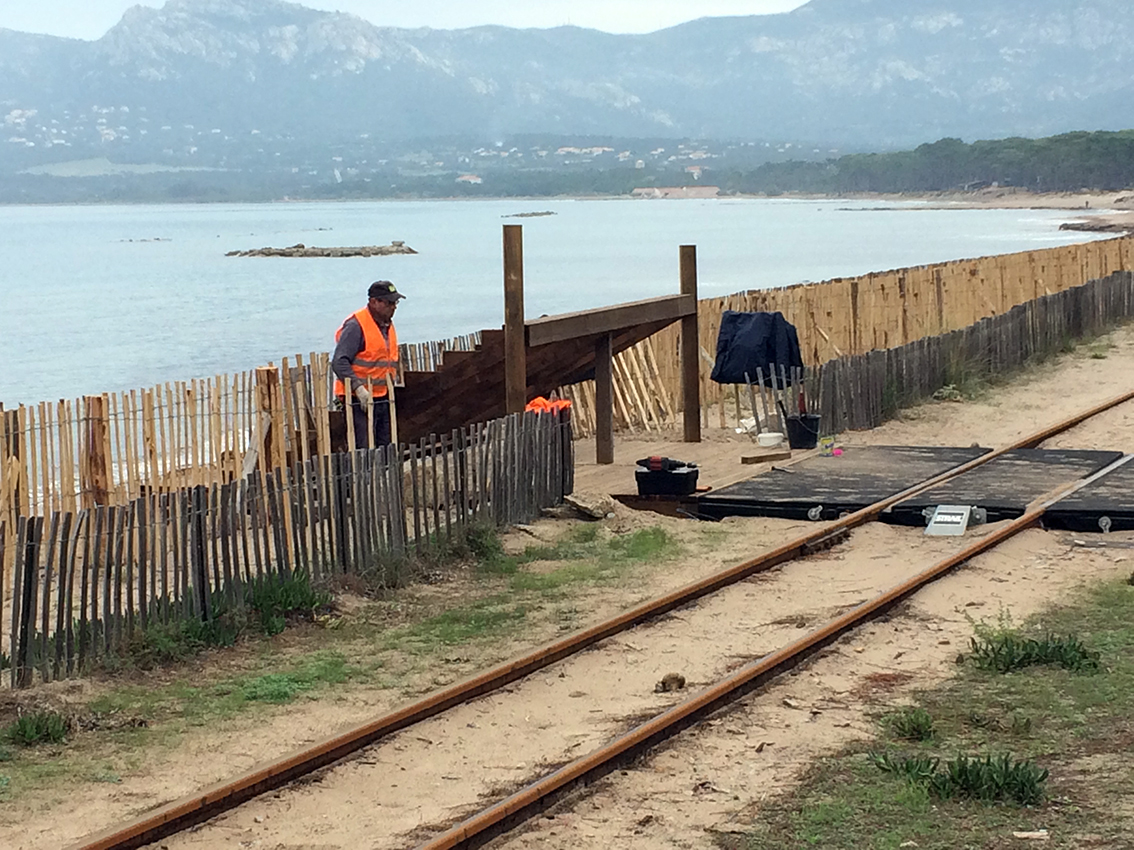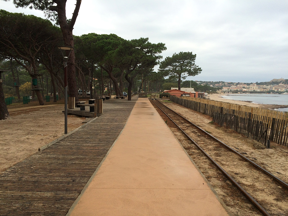 La collectivité territoriale de Corse, maître d’ouvrage a souhaité a souhaité procéder à un aménagement complémentaire définitif de cette traversée de la pinède très fréquentée tout au long de l’année et plus particulièrement en saison estivale où des milliers et des milliers de personnes accèdent chaque jour à la plage ou promènent sur la promenade en bois réalisée par la municipalité de Calvi.