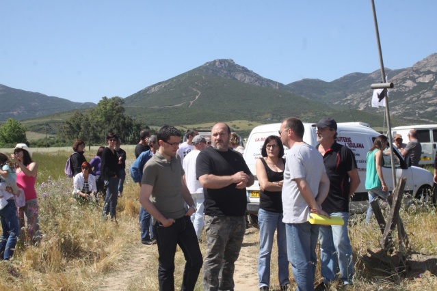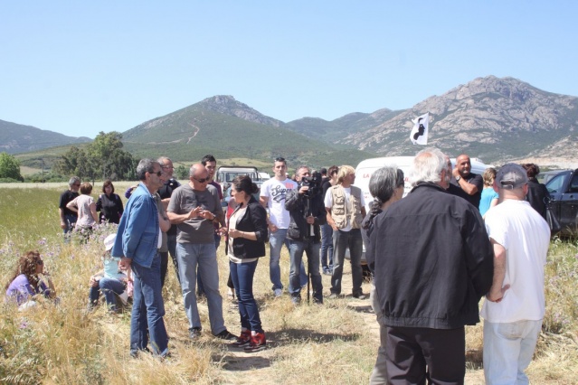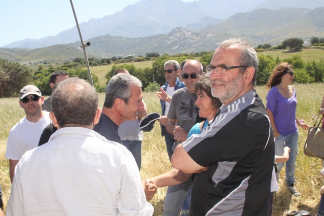 C’est sur un immense champ, situé sur la route de l’aéroport de Calvi - Balagne, en direction de la Sablière de Balagne, commune de Calenzana, que les militants se sont rassemblés. Jean-Guy Talamoni, leader de Corsica Libera, entouré de Josepha Giacometti, élue comme lui de l’assemblée de Corse, le Dr Eric Simoni et Joseph Colombani, président de la Chambre régionale d’agriculture, sont venus soutenir les représentants locaux du mouvement, à l’initiative de ce rassemblement et les éleveurs concernés par ce projet.