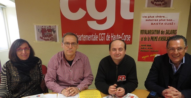 Les représentants de la CGT et FO : Jackie Tartuffo, Jean-Pierre Battestini, Daniel Spazzola, Antoine Mandrichi