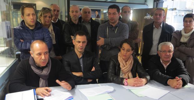 Gilles Simeoni, leader d’Inseme per Bastia et candidat aux élections municipales de mars 2014, entouré de dirigeants et de spécialistes sportifs.