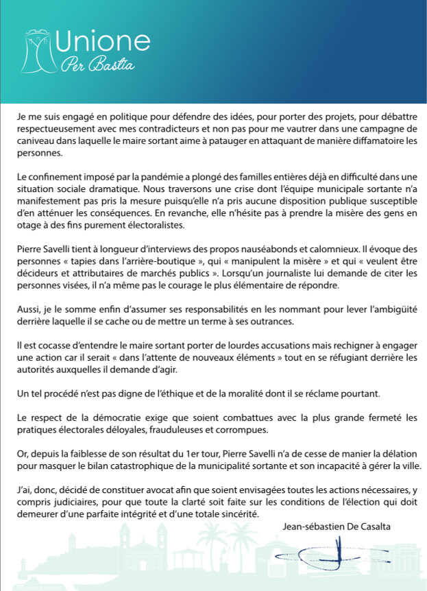 Or depuis la faiblesse de son résultat eu premier tour, Pierre Savelli n' a pas cessé de manier la délation pour masquer le bilan catastrophique de la municipalité sortante son incapacité à gérer la ville.